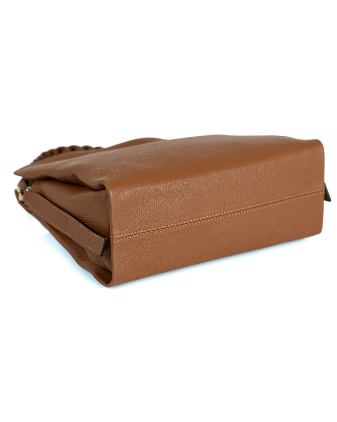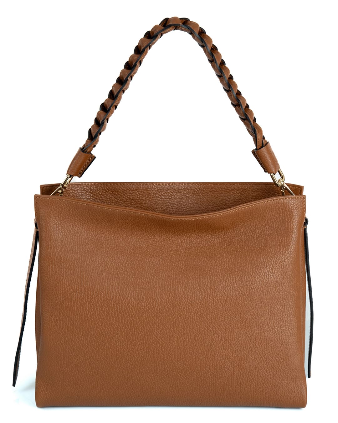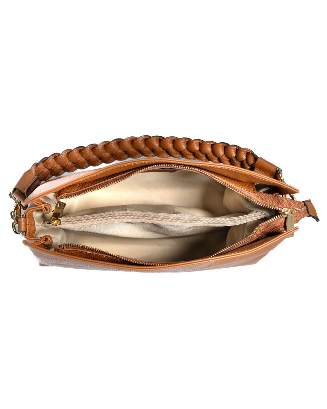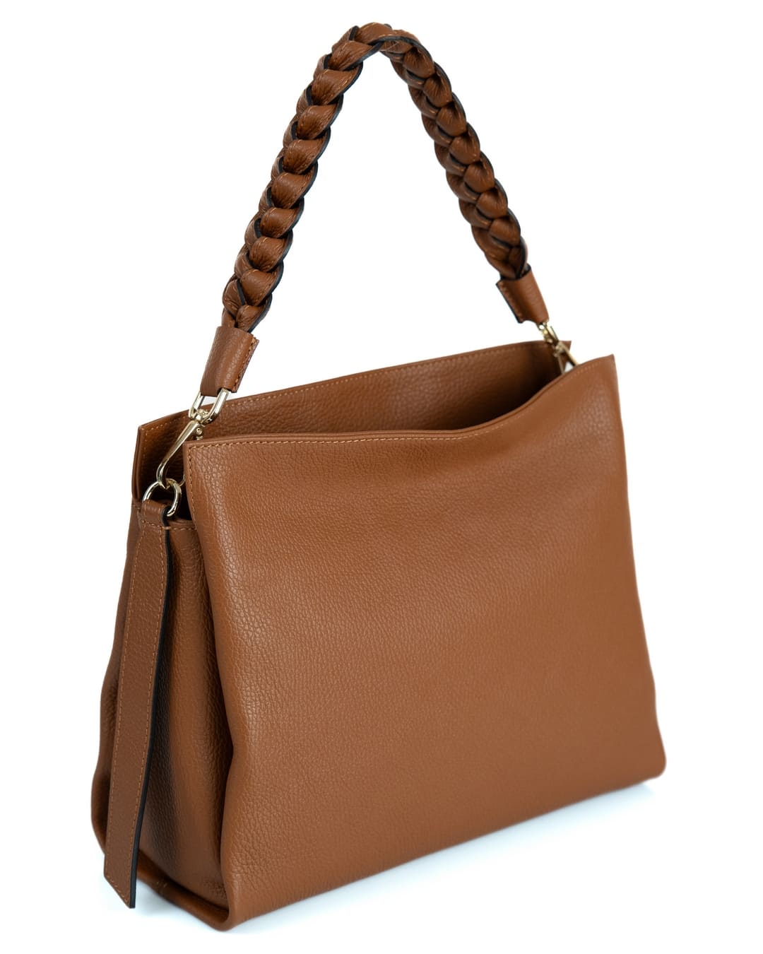 AGATHA Borsa a spalla in vera pelle martellata colore cuoio con manico intrecciato e tracolla