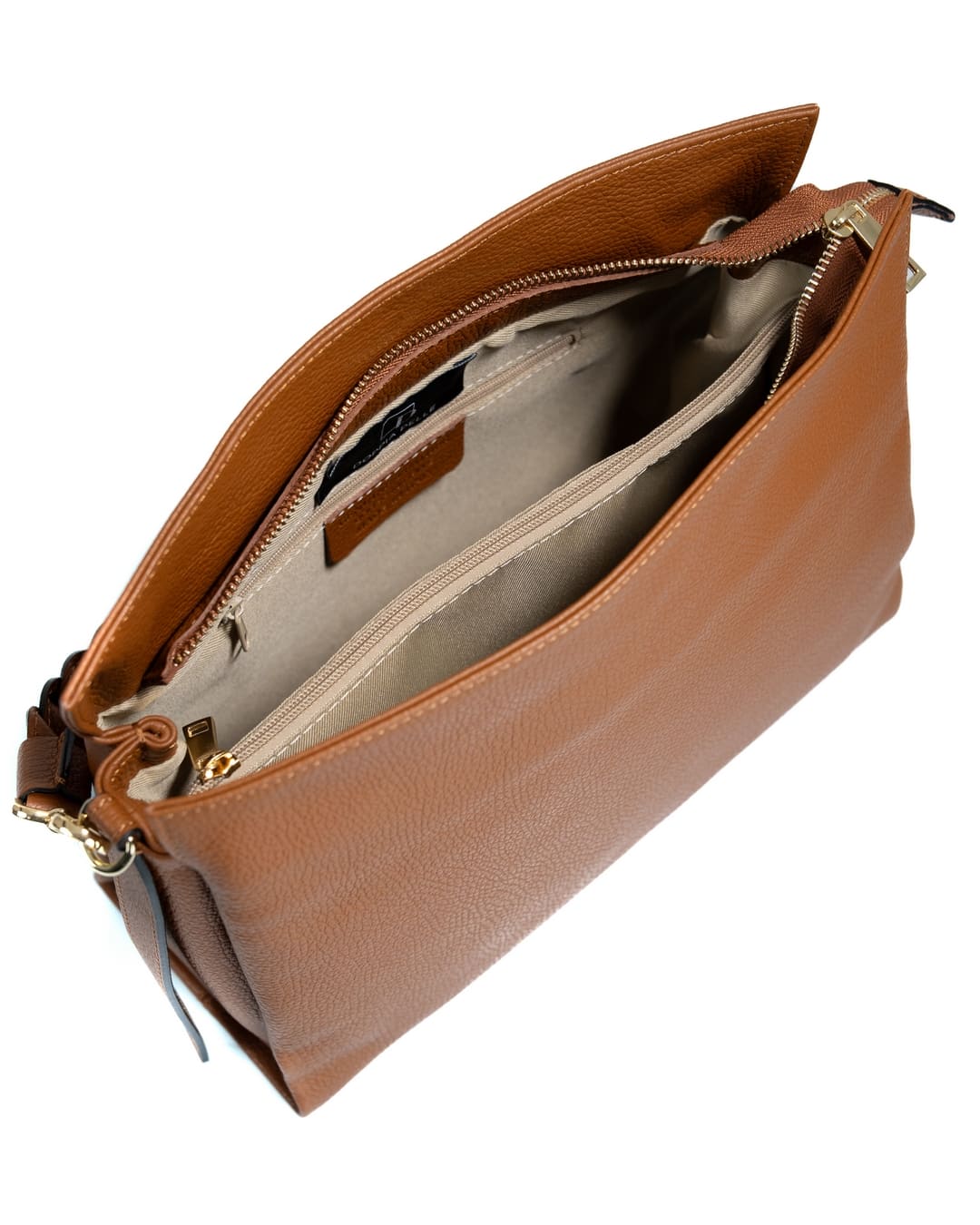 All’ interno, la borsa Agatha offre un’organizzazione impeccabile con tre scomparti accessibili tramite una pratica zip. Troverai una tasca tramezza con cerniera, una tasca con zip per mantenere in ordine gli oggetti più piccoli e doppio taschino, ideali per riporre i tuoi accessori essenziali.