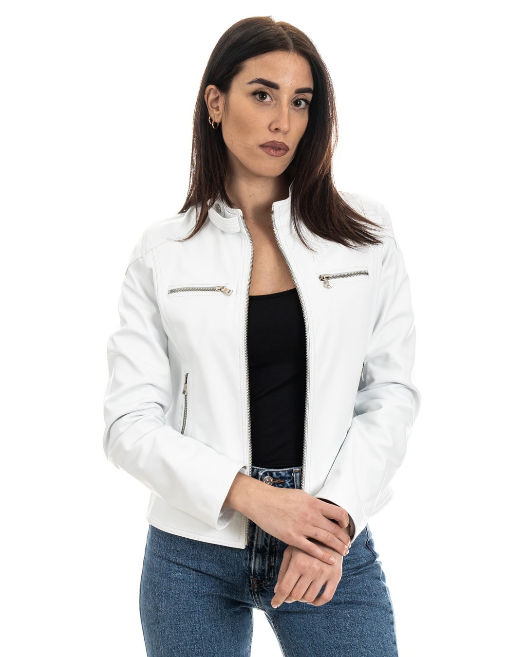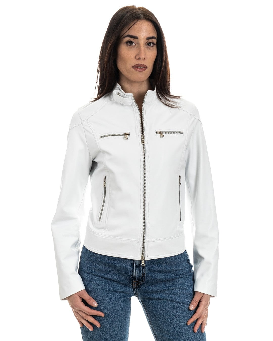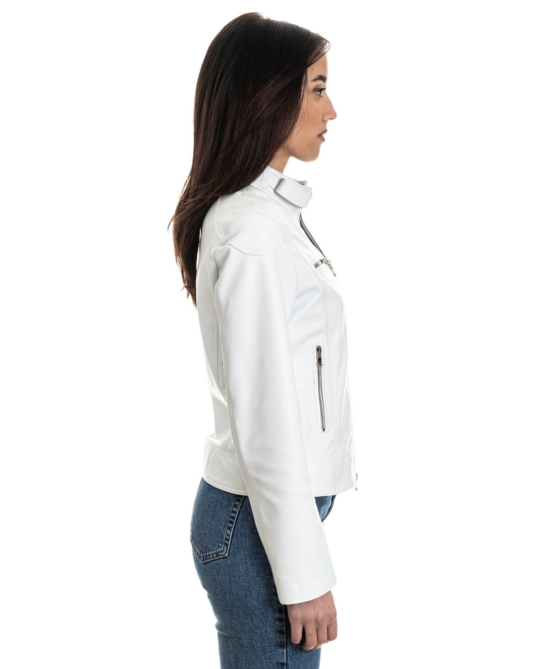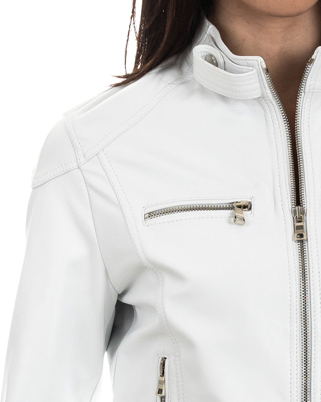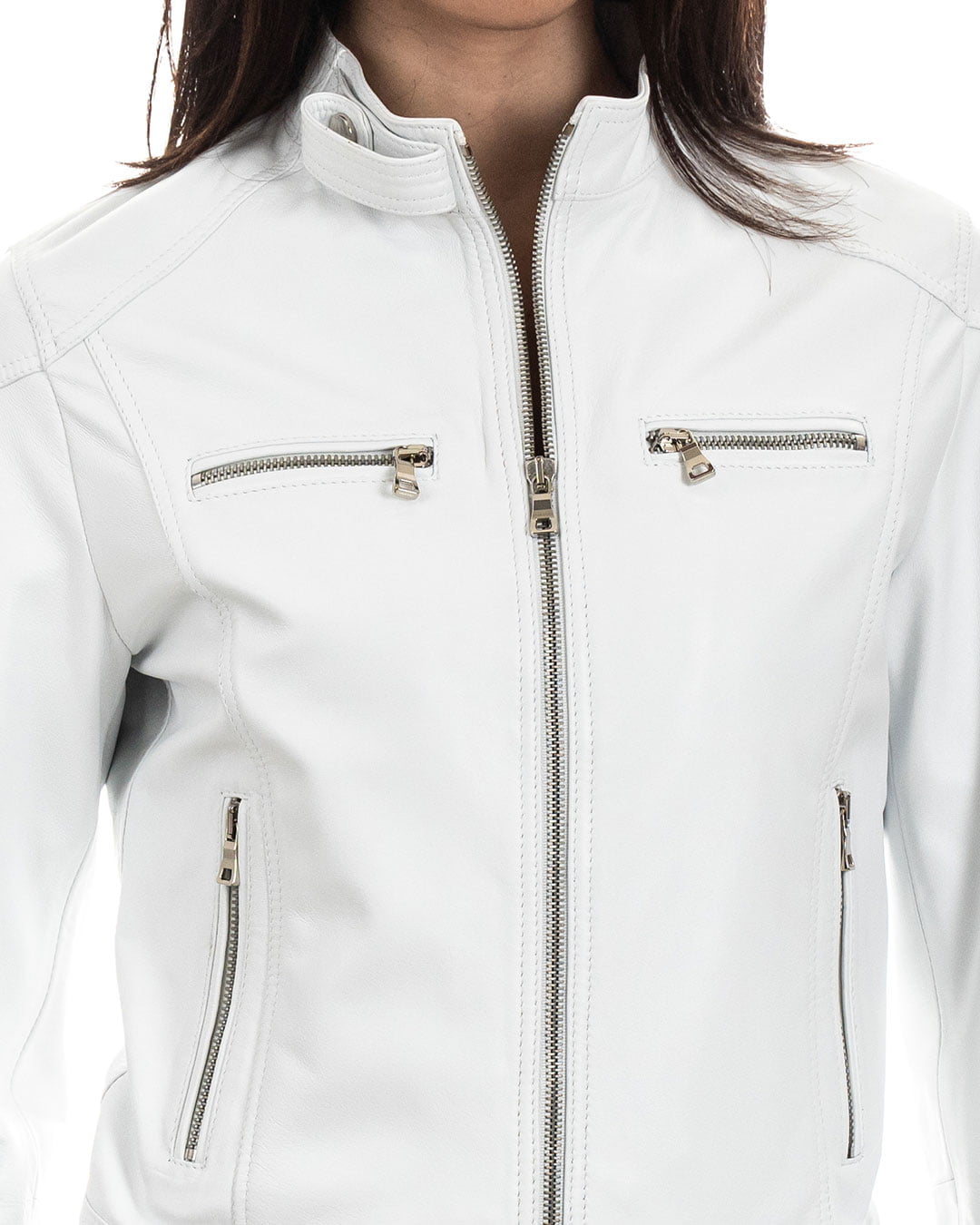 Giacca Biker da Donna in Vera Pelle Bianco – Modello ALBA