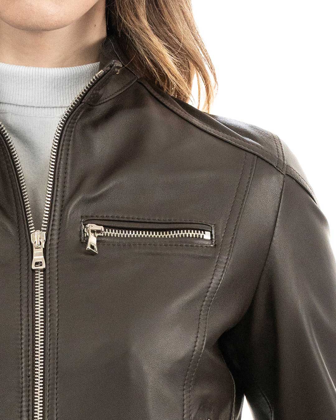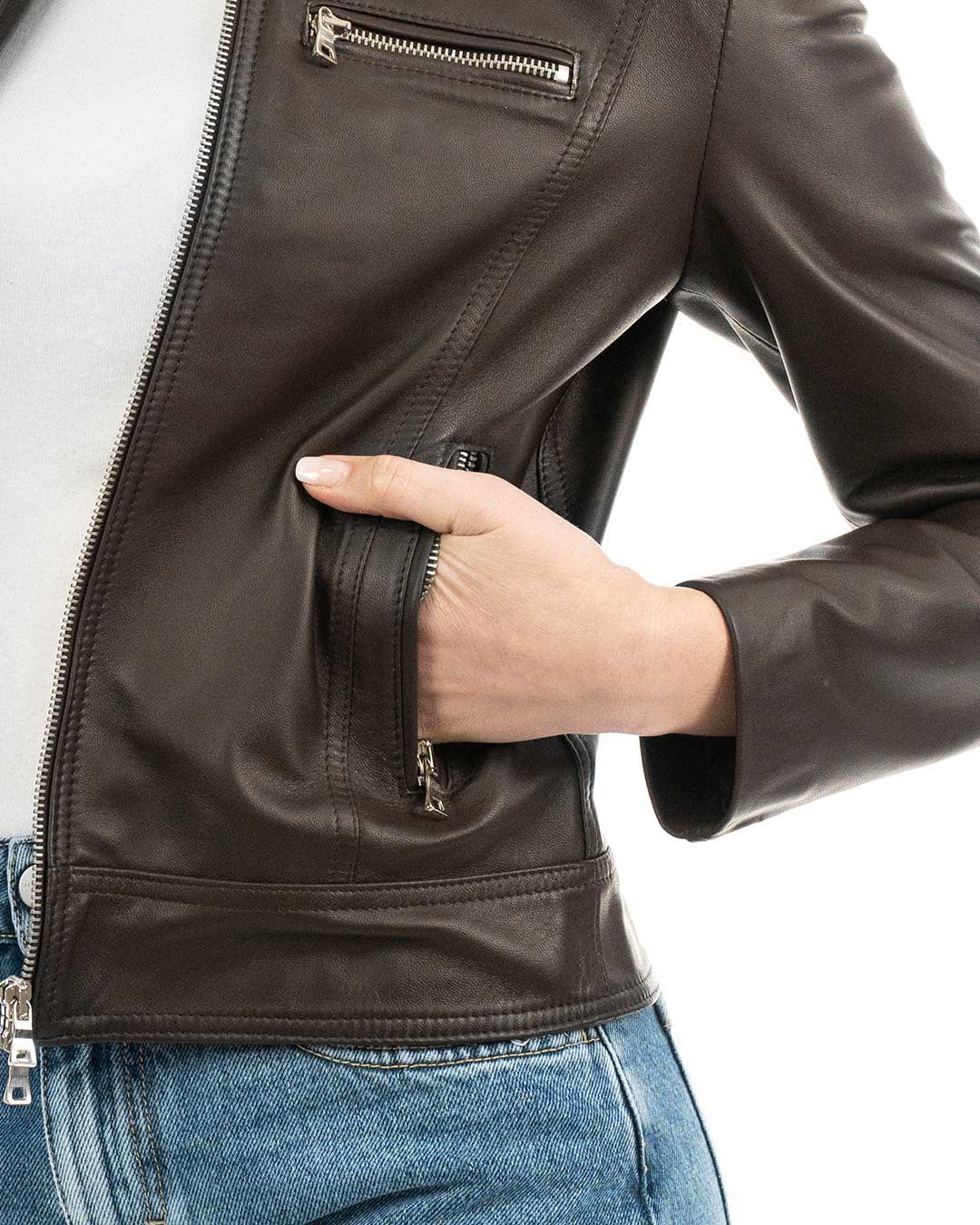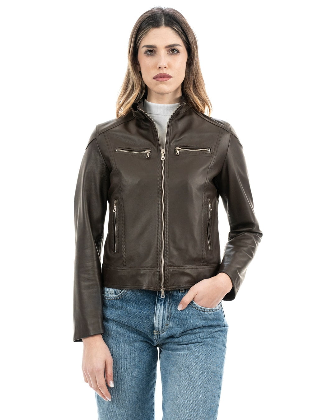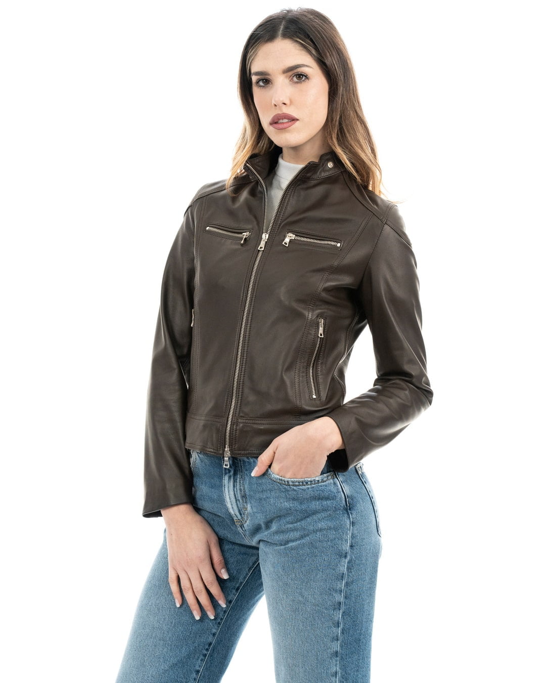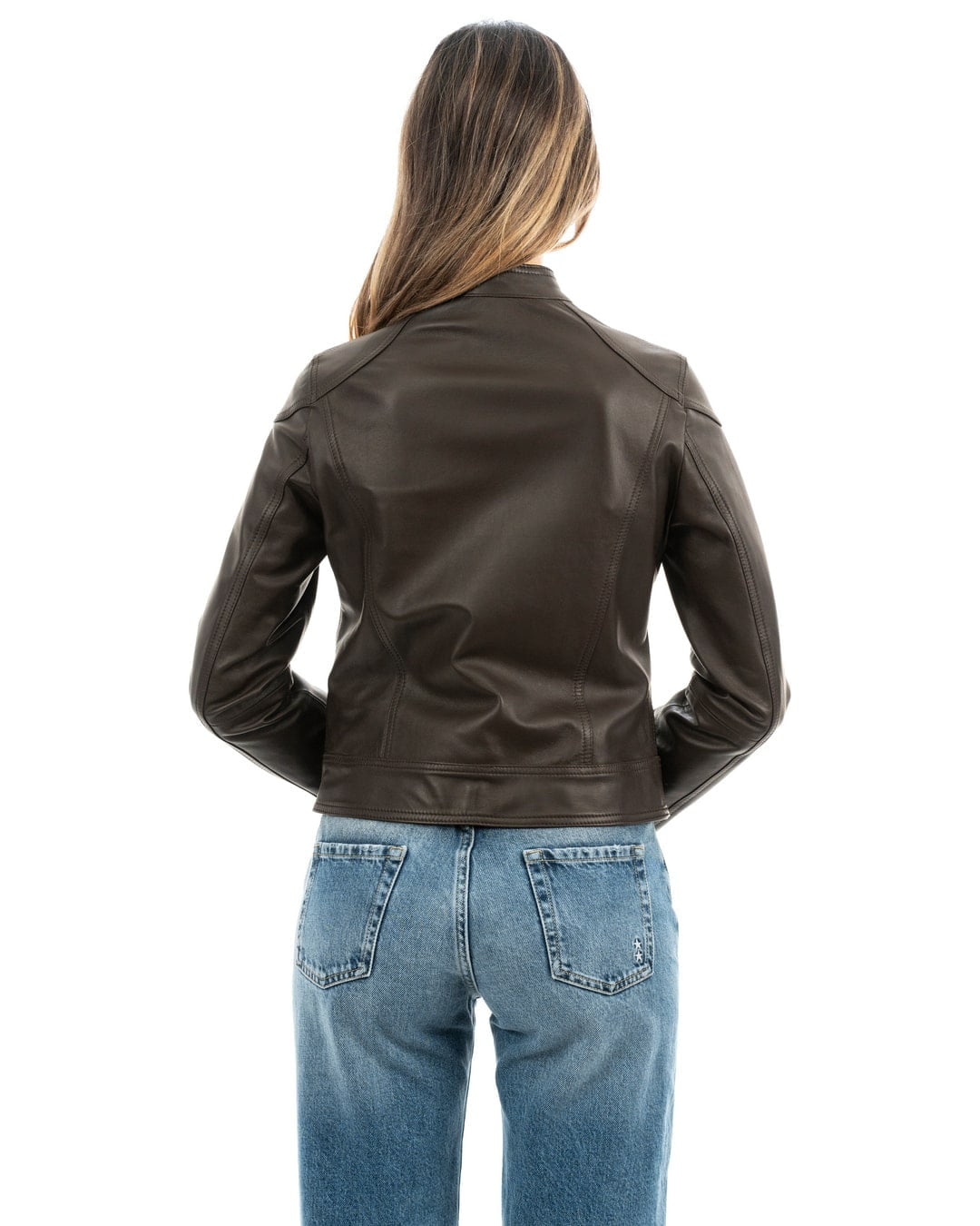 Giacca Biker da Donna in Vera Pelle Marrone – Modello ALBA