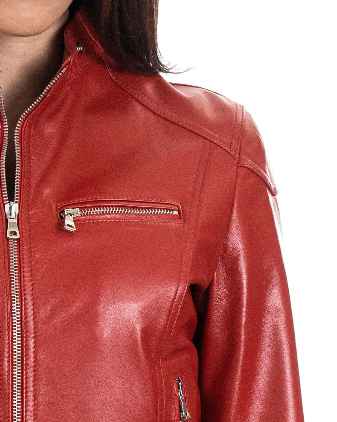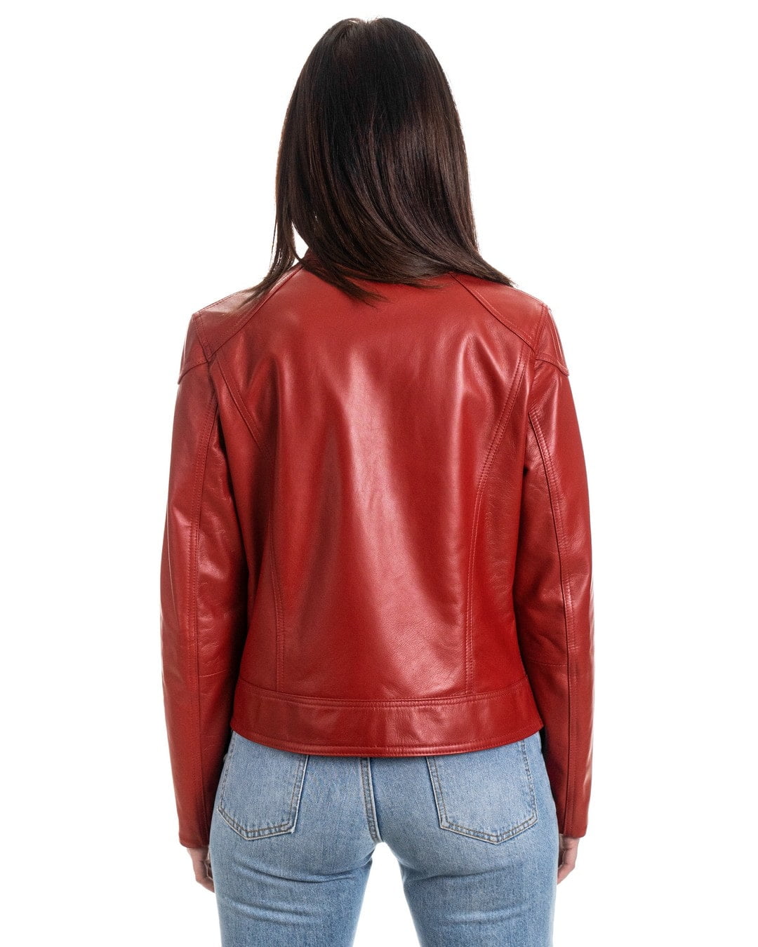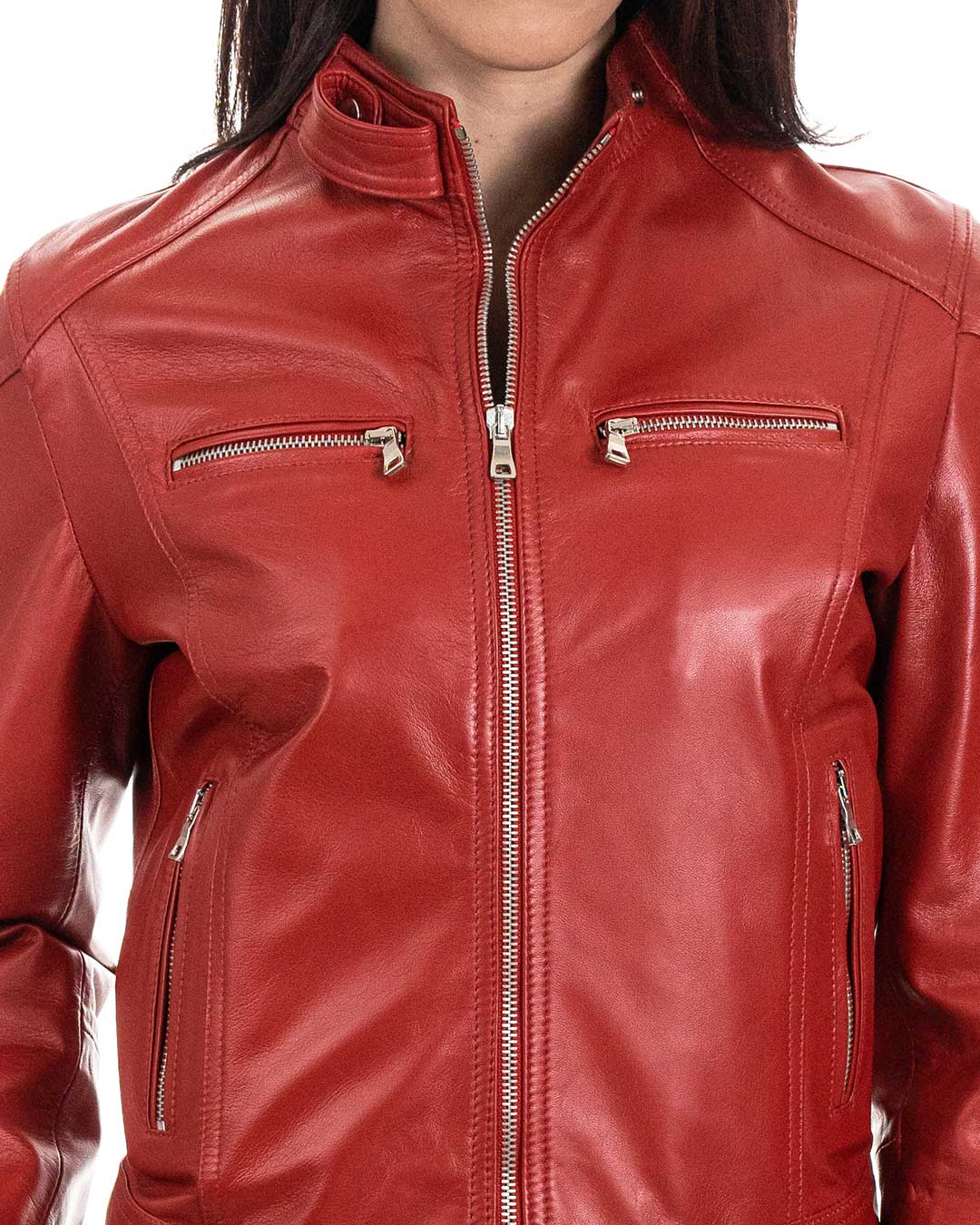 Giacca Biker da Donna in Vera Pelle Rosso – Modello ALBA