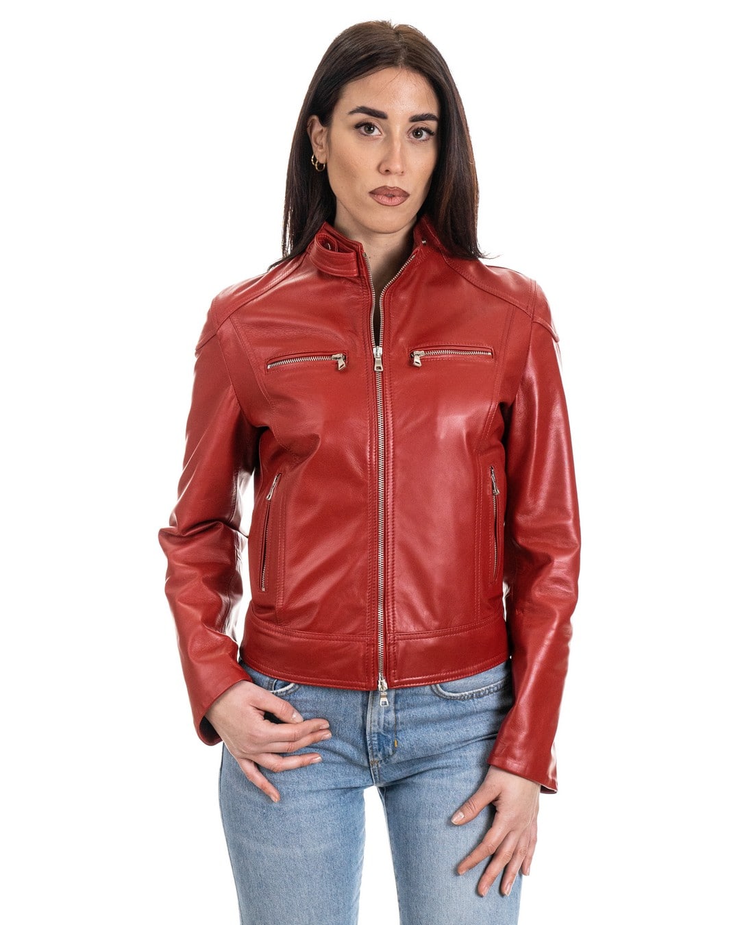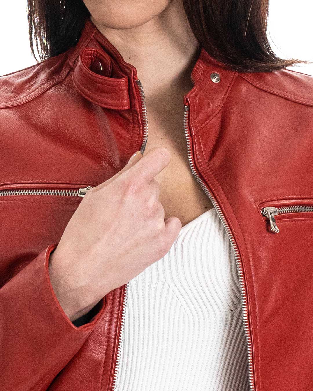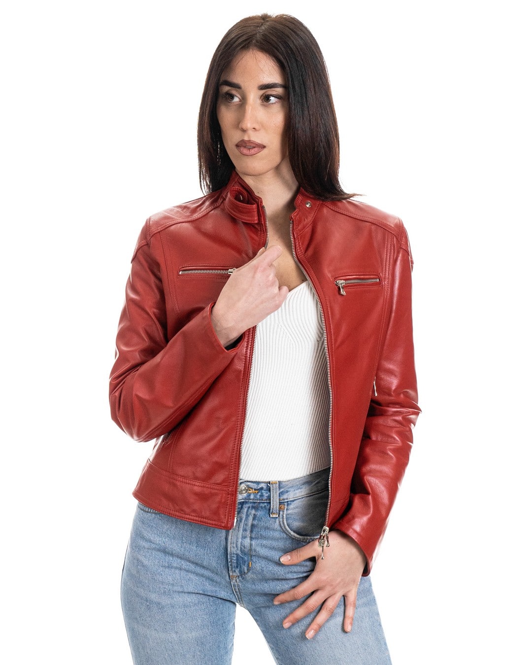 Giacca Biker da Donna in Vera Pelle Rosso – Modello ALBA