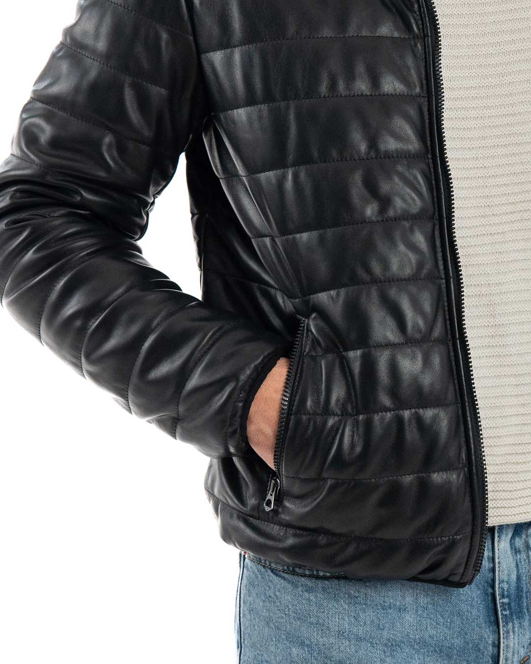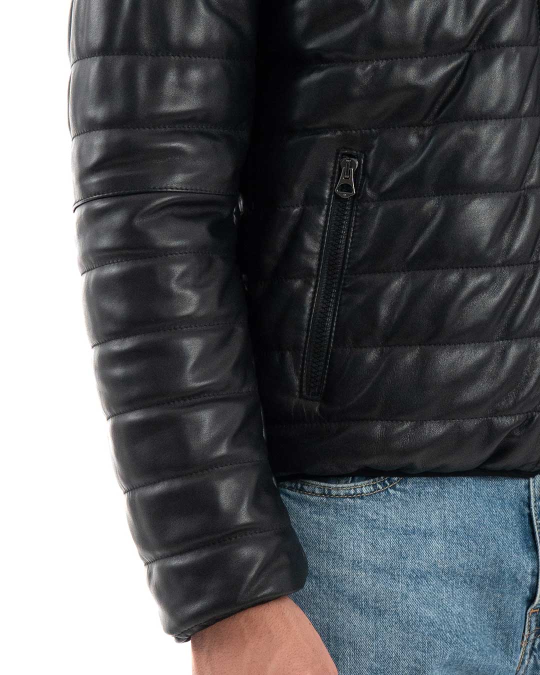 ADAM Piumino con cappuccio da uomo in vera pelle nero