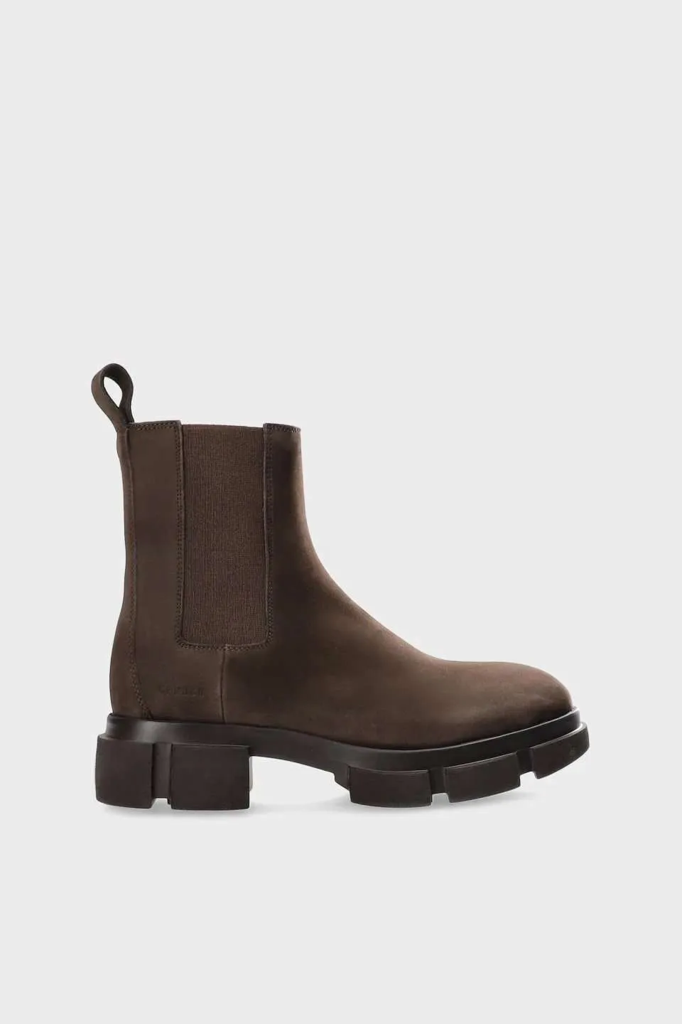 Anfibi CPH570 Copenhagen in morbida pelle nabuk. Modello Chelsea alto fino alla caviglia. Punta tonda. Elastici laterali. Passante sul gambale. Logo dorato all’esterno. Uno stile accattivante ma minimalista.