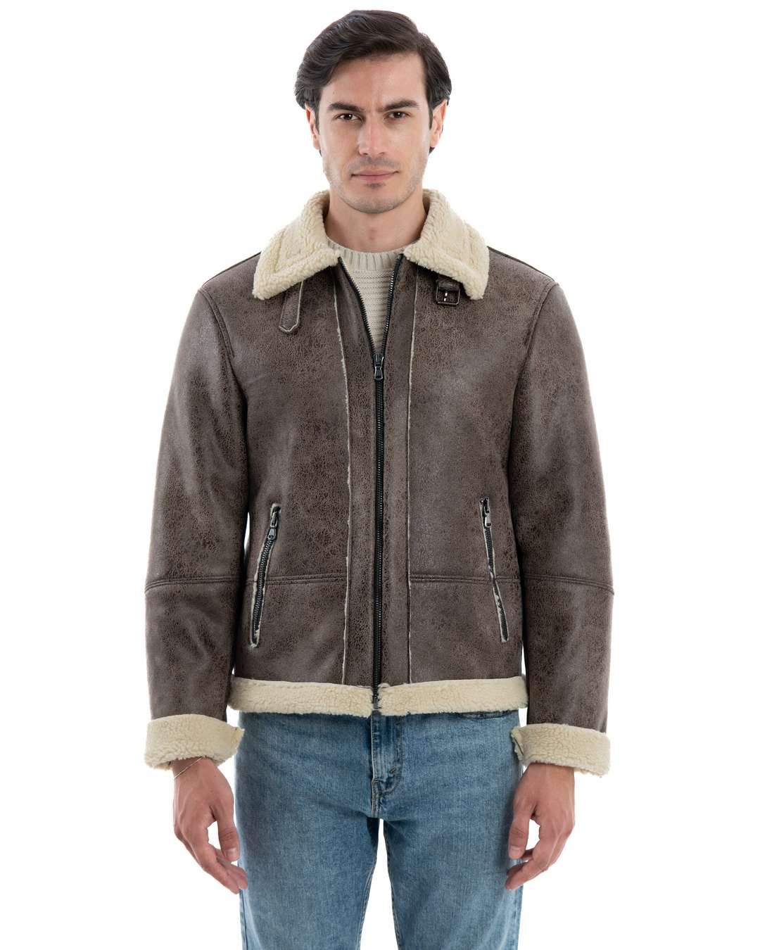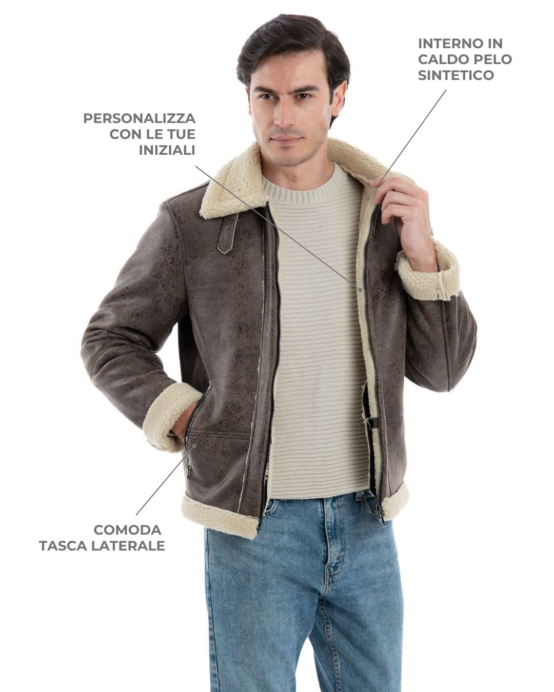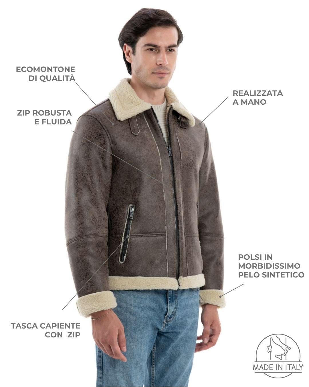 Bomber da Uomo Marrone Shearling Style – Modello AVIATORE