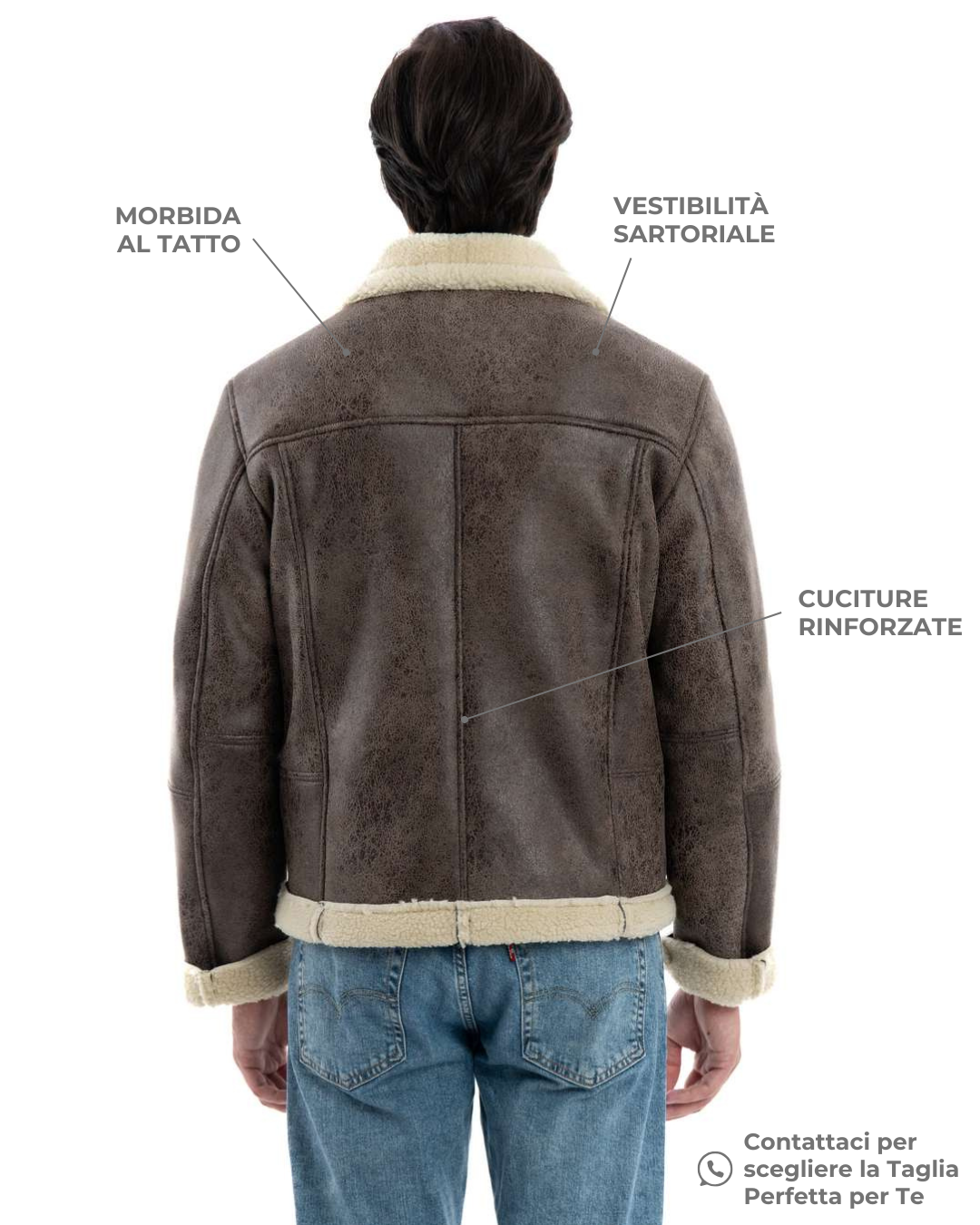 Si fa presente che, come descritto sopra, la giacca non è realizzata in pelle di vero montone, ma in un tessuto di alta qualità che riproduce fedelmente l’aspetto e le caratteristiche del montone in termini di calore e comfort, garantendo un prezzo più accessibile. Tuttavia, essendo artigiani, offriamo la possibilità di realizzare lo stesso modello in vera pelle di montone, con una maggiorazione di prezzo. Per maggiori informazioni o richieste personalizzate, non esitare a contattarci in privato.