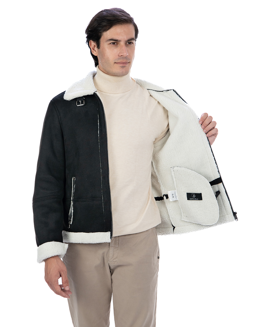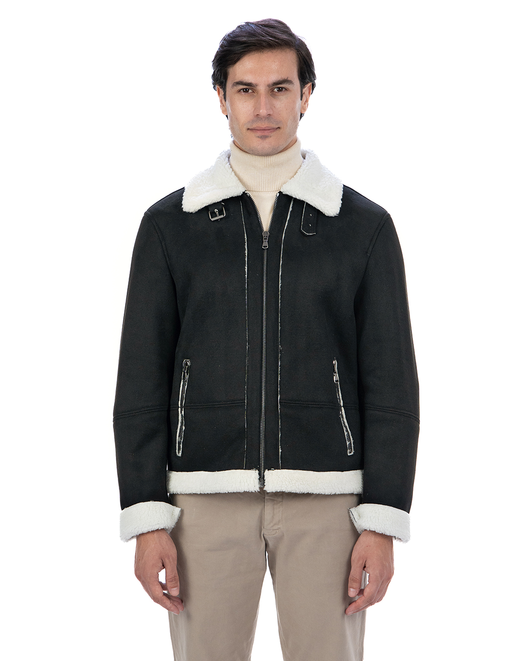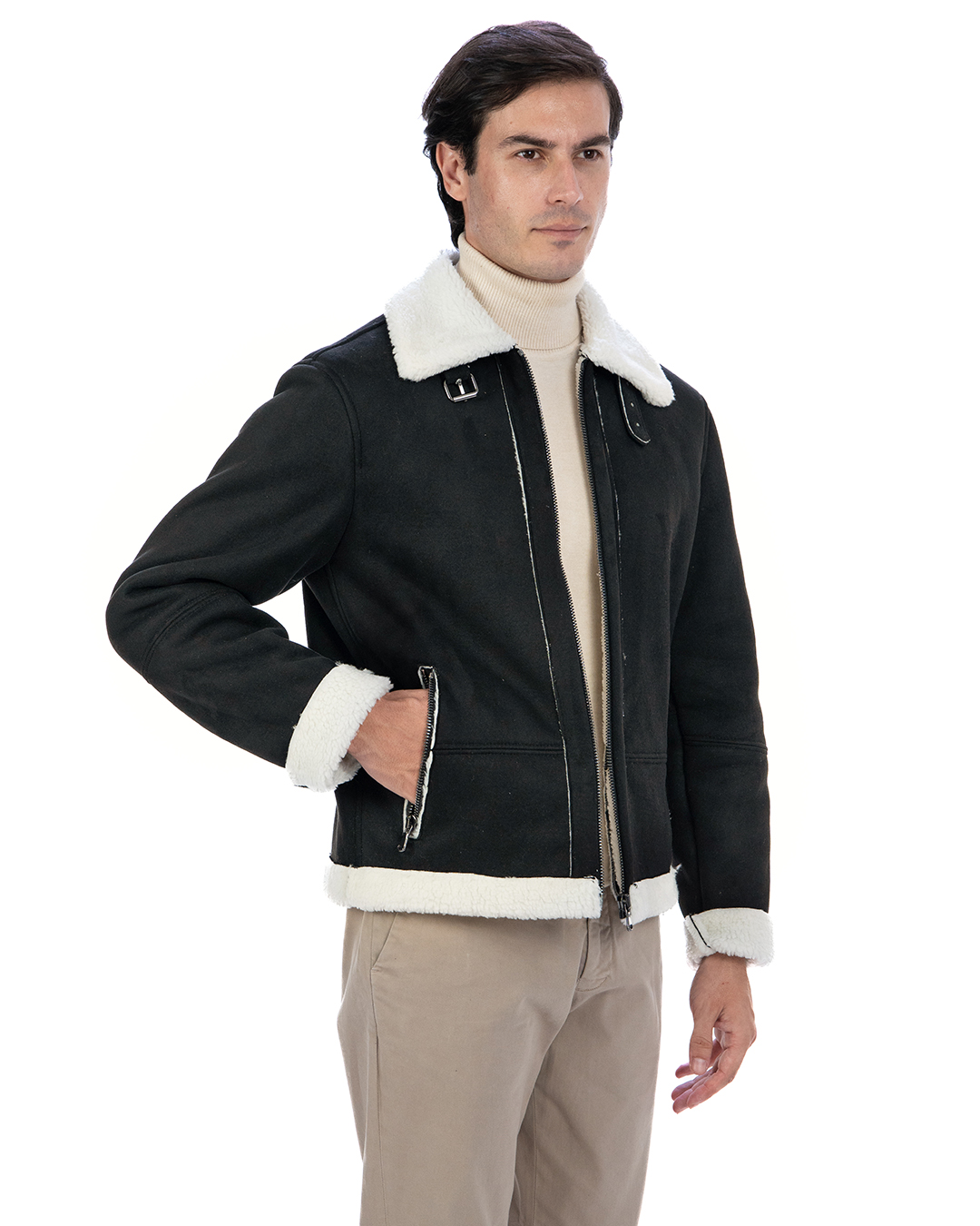 Bomber da Uomo Scamosciato Nero Shearling Style – Modello AVIATORE