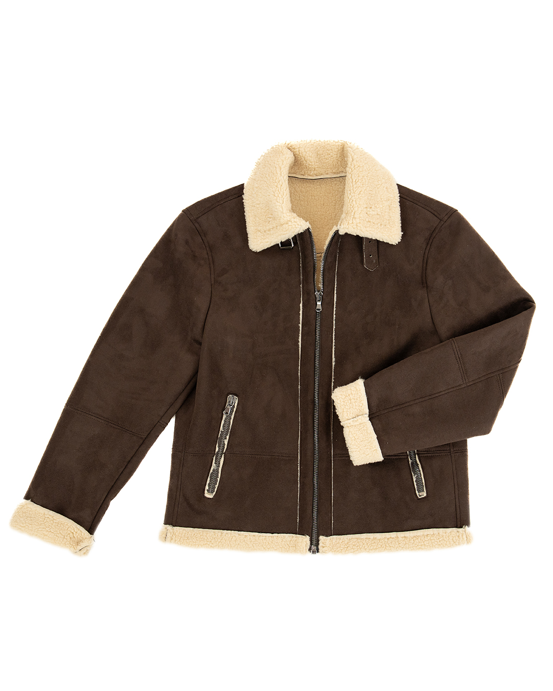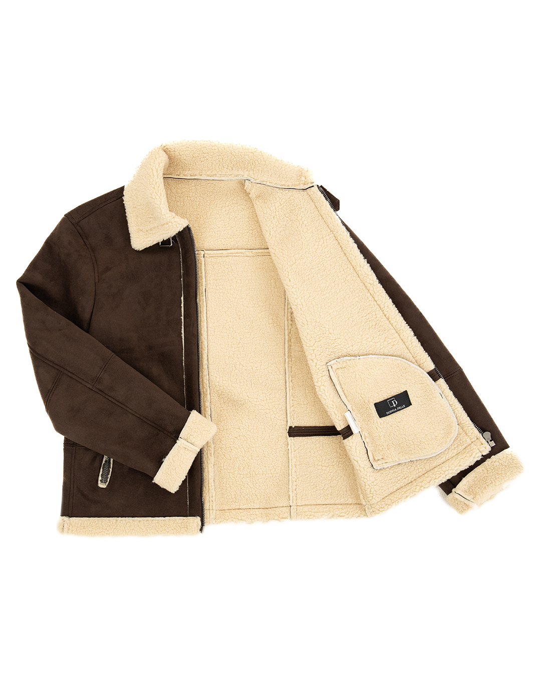 - Tessuto Effetto Shearling Scamosciato: Il tessuto shearling scamosciato conferisce al bomber un aspetto unico e alla moda, perfetto per un look contemporaneo.