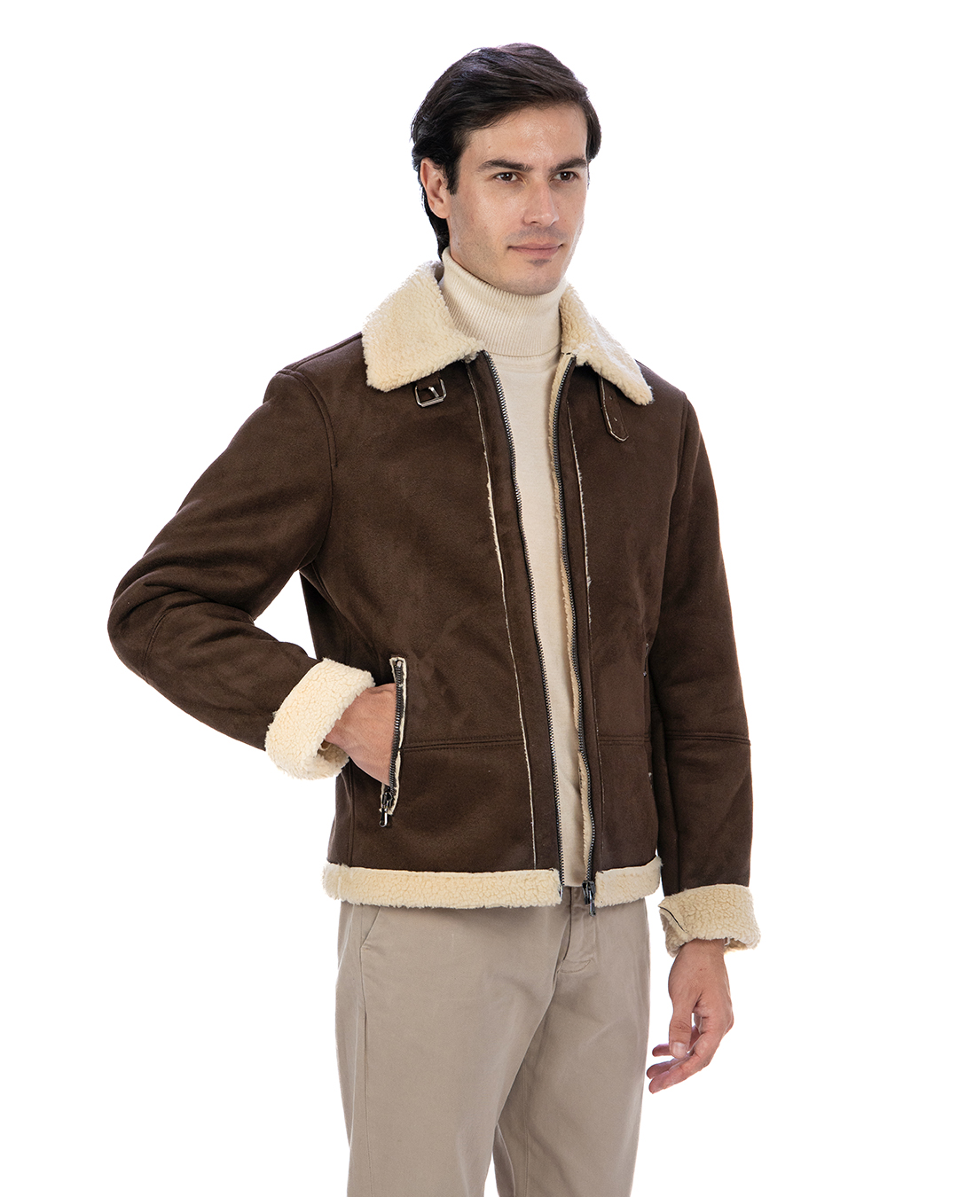 Bomber da Uomo Scamosciato T. Moro Shearling Style – Modello AVIATORE