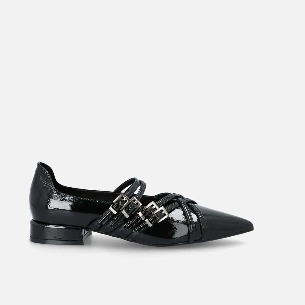 Ballerina Cin Aso Bruno Premi in pelle effetto vernice con fibbie incrociate sul davanti.