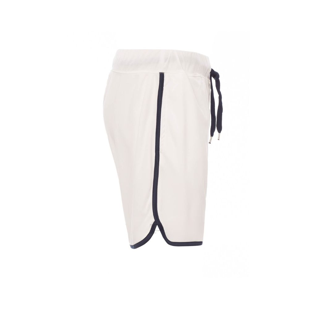 Composizione: 100% poliestere Peso: 155 gr/mq Bermuda sportivo Coulisse in vita Patta con zip 2 tasche laterali Profilo dei bordi a contrasto Ideali per primavera/estate