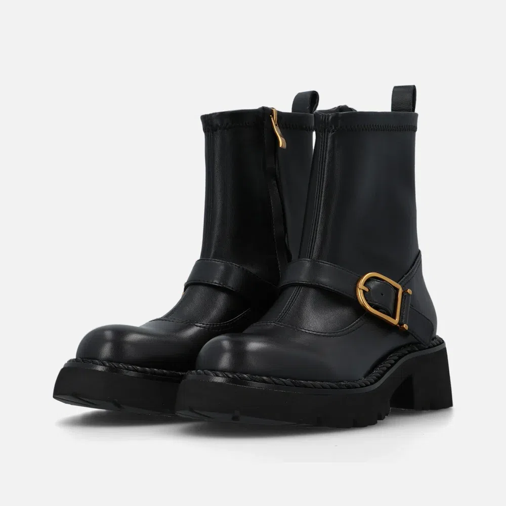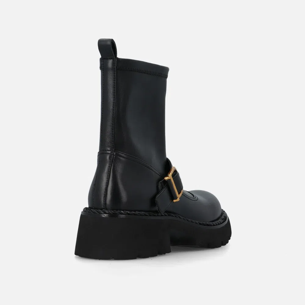 Bikers Fib Dol Bruno Premi dal look grunge. Il gambale in stretch e la suola carrarmato ti offrono comfort e stabilità, mentre la fibbia decorativa sul collo del piede aggiunge un tocco di stile. Perfetti per un outfit ribelle ma comodo.