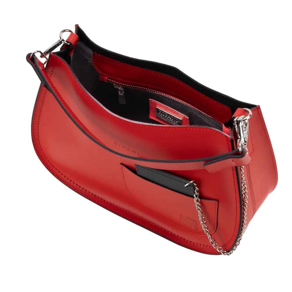 COLORE: Rosso Tasca anteriore, catena in metallo, portacarte in pelle a contrasto Vera pelle liscia, Accessori nichel Dimensione 25 x 21 x 9cm (l x a x p)