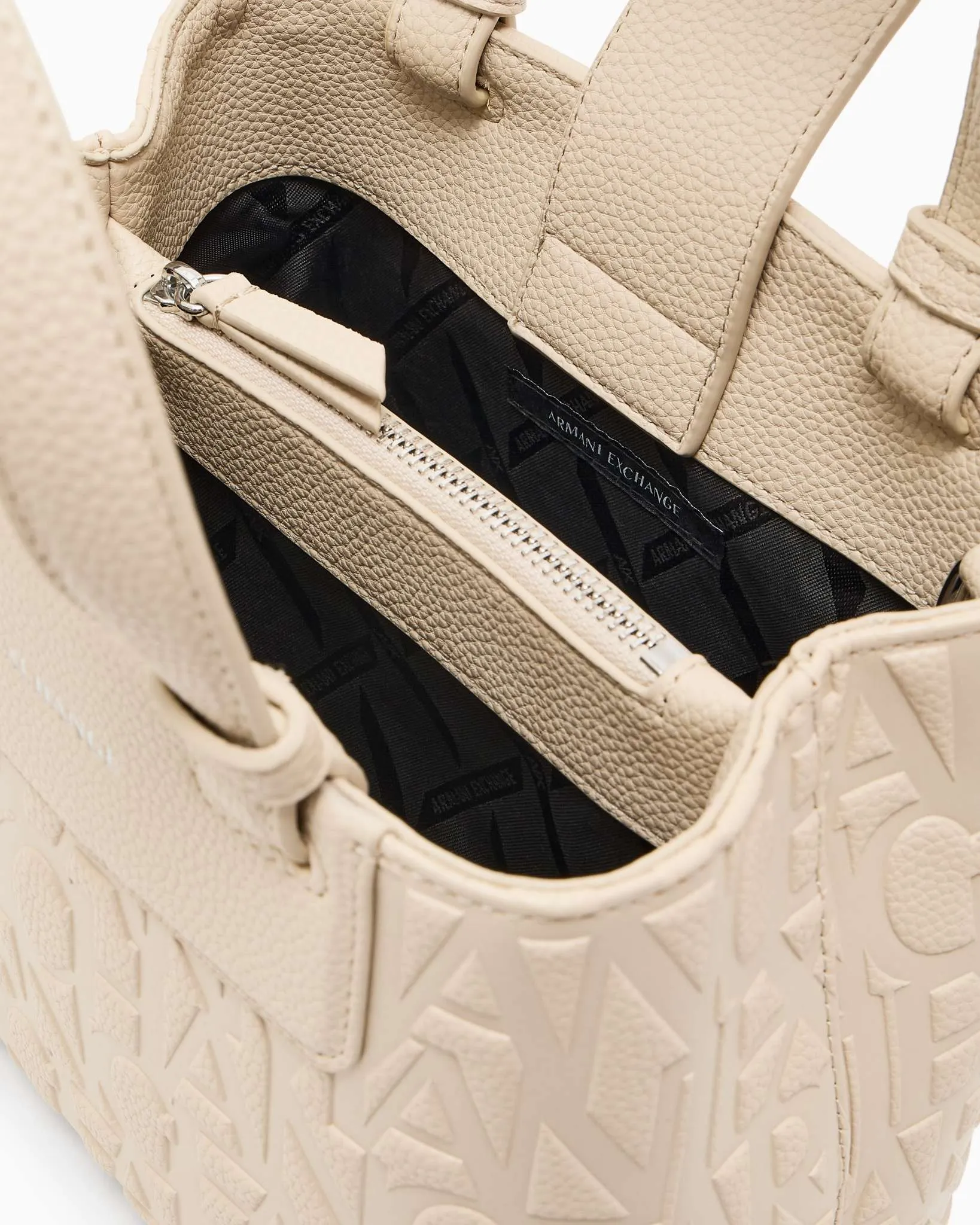 Borsa Armani Exchange a mano con logo in rilievo e doppio manico. Design elegante e capiente, perfetta per un look raffinato da giorno.