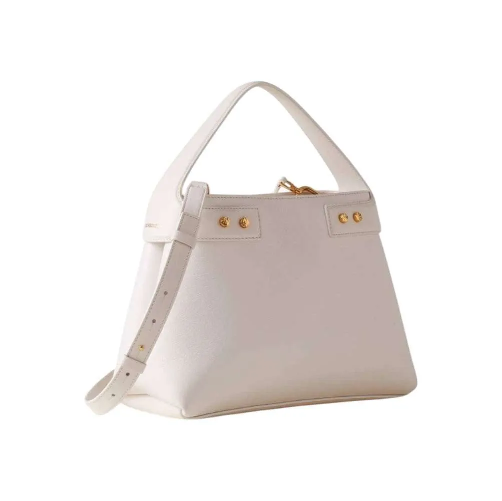 AGATHA Borsa a spalla in vera pelle martellata colore beige con manico intrecciato e tracolla rimovibile