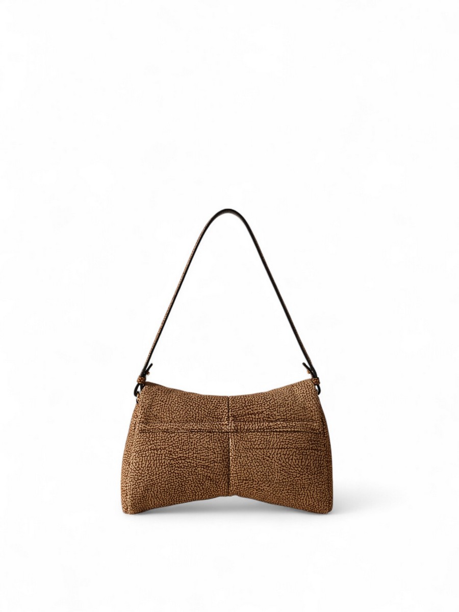 - Materiale: borsa realizzata in pregiata pelle scamosciata, la sua morbidezza amplifica la sua eleganza.
