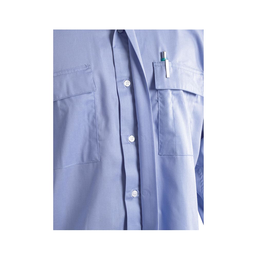 Inoltre, la camicia è dotata di taschini applicati al petto con aletta fermata da velcro. Di conseguenza, offrono spazio per riporre piccoli oggetti o utensili di lavoro in modo sicuro ed accessibile. I pittogrammi esterni sotto il taschino forniscono informazioni importanti sulle caratteristiche di sicurezza della camicia, garantendo la conformità normativa nei luoghi di lavoro.