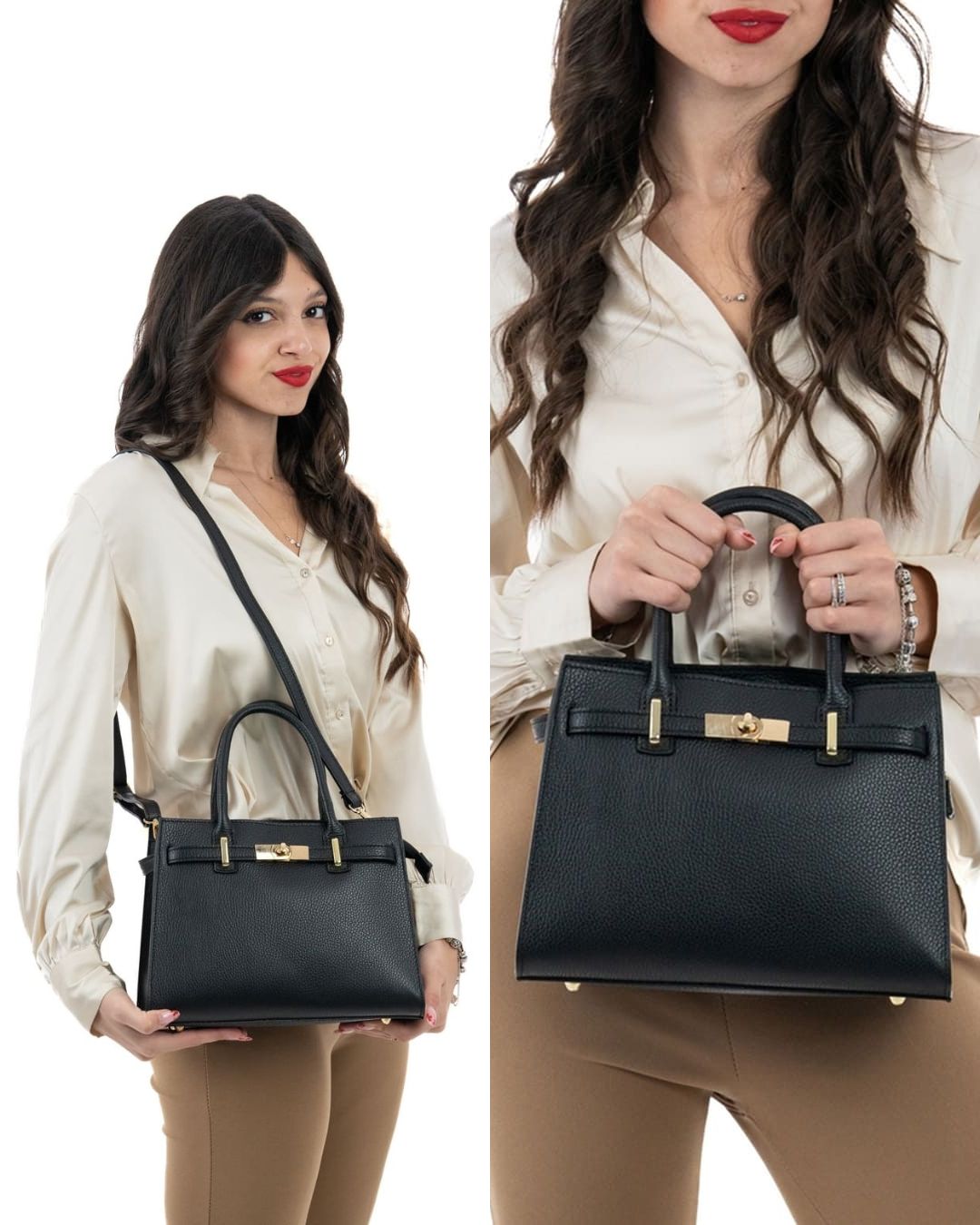 - Tracolla Regolabile: La borsa è dotata di una comoda tracolla in pelle regolabile per essere indossata a spalla o a tracolla, rendendola versatile e adatta a ogni stile.