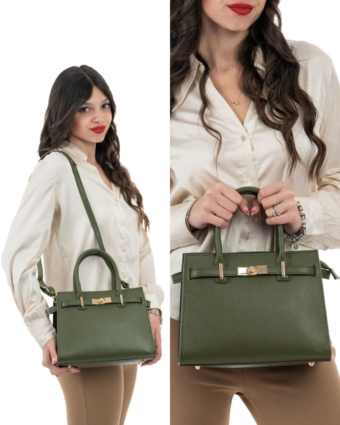 Le parti metalliche della borsa, in raffinato color oro, aggiungono un ulteriore tocco di eleganza e lusso.
