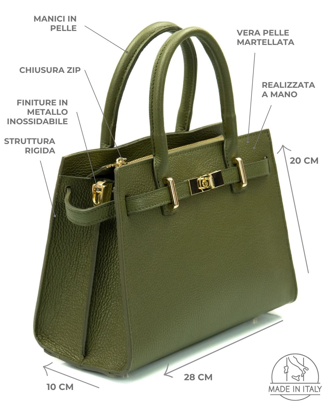 Materiale: Vera pelle di vitello martellata