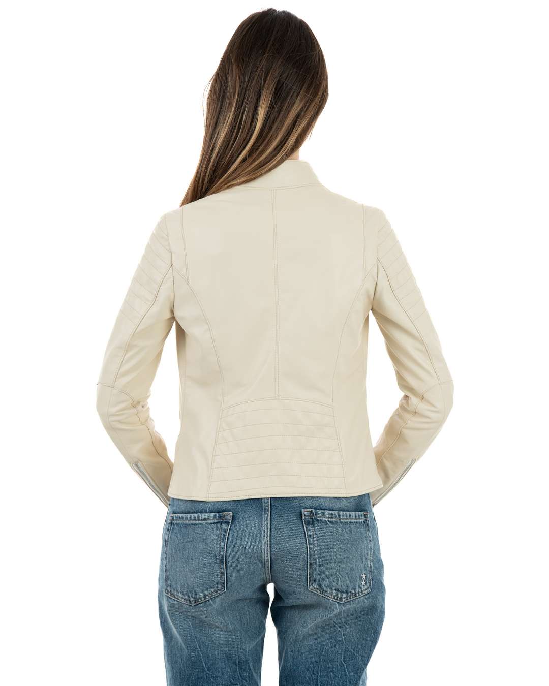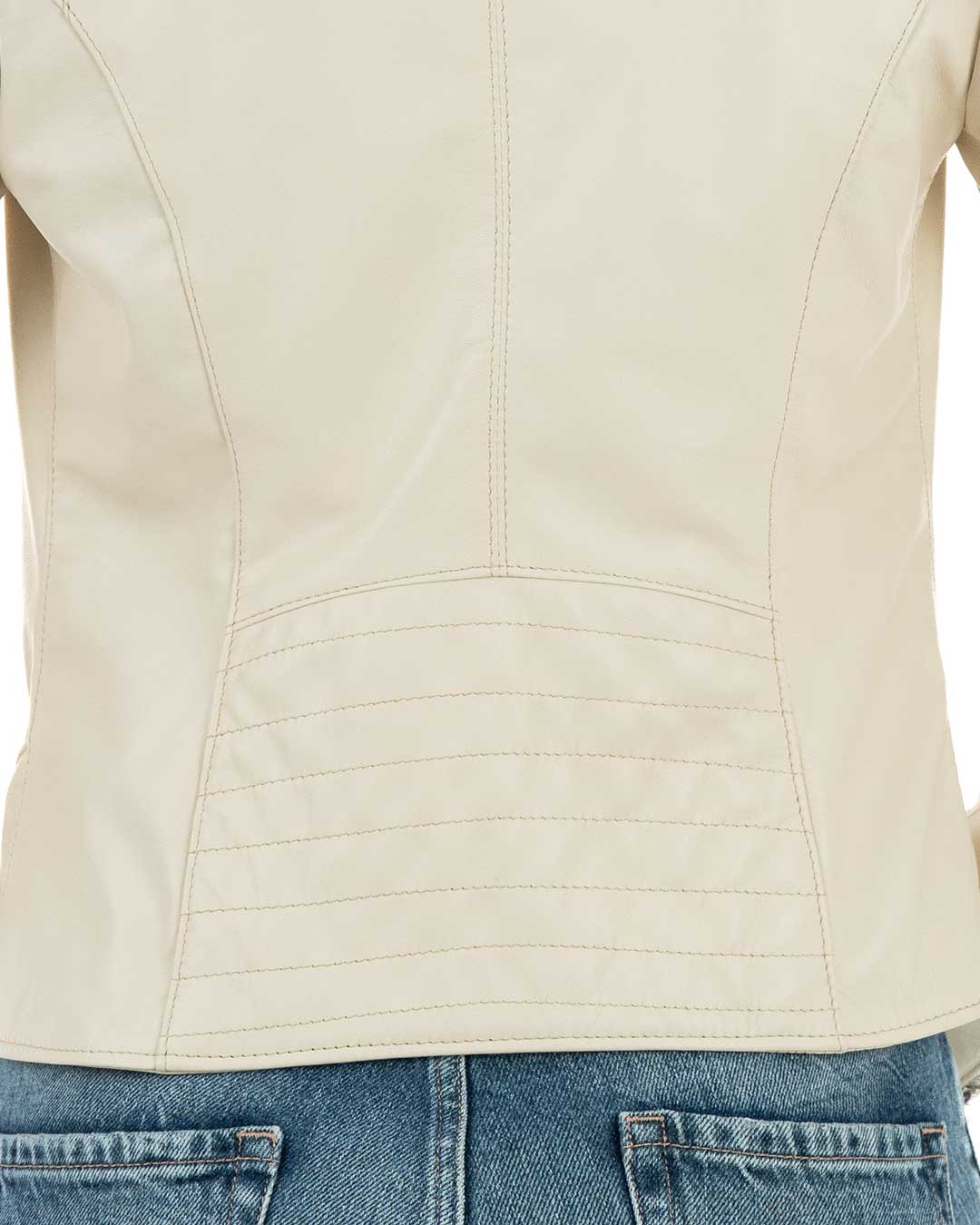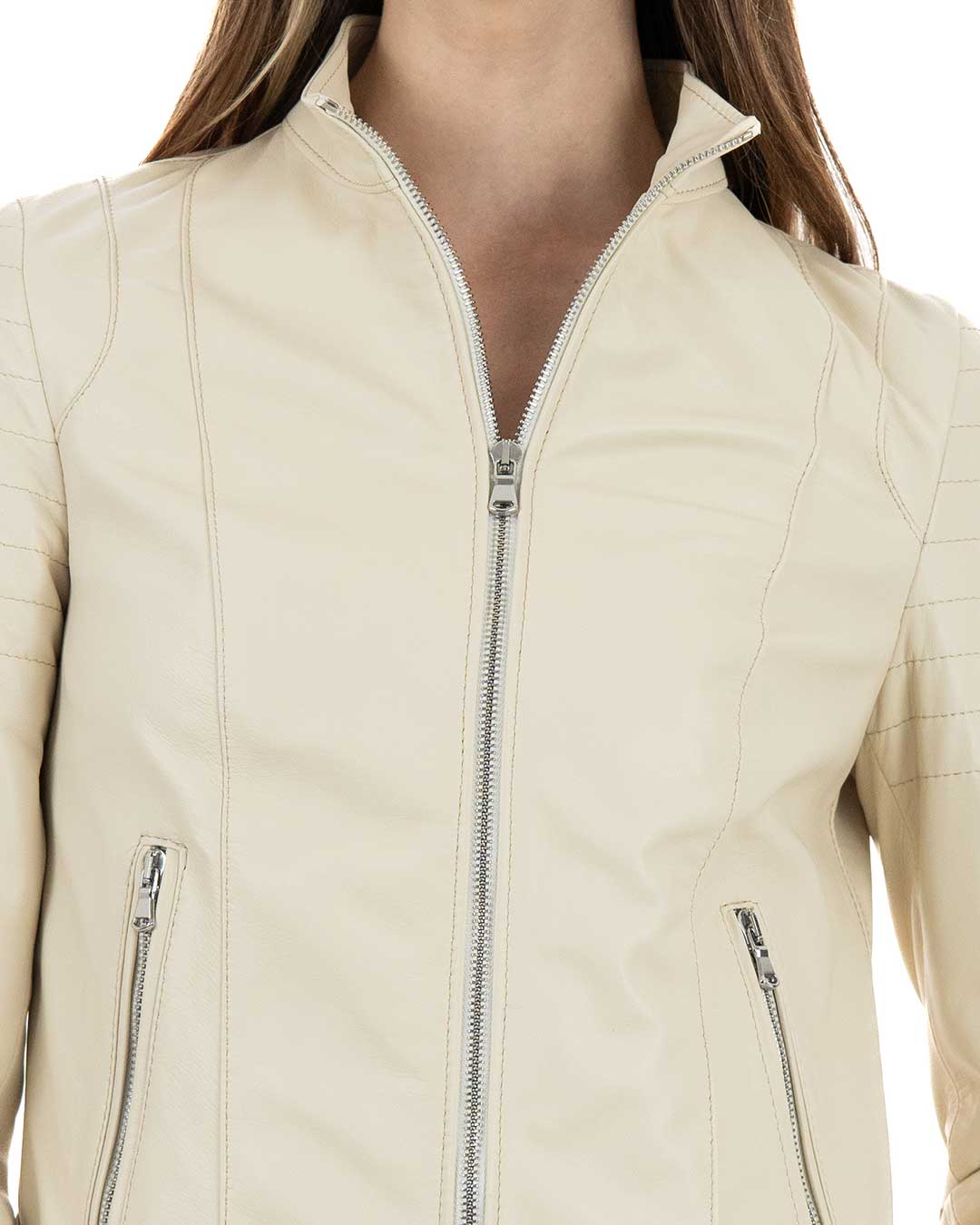 Giacca Biker da Donna in Vera Pelle Panna – Modello CLOE