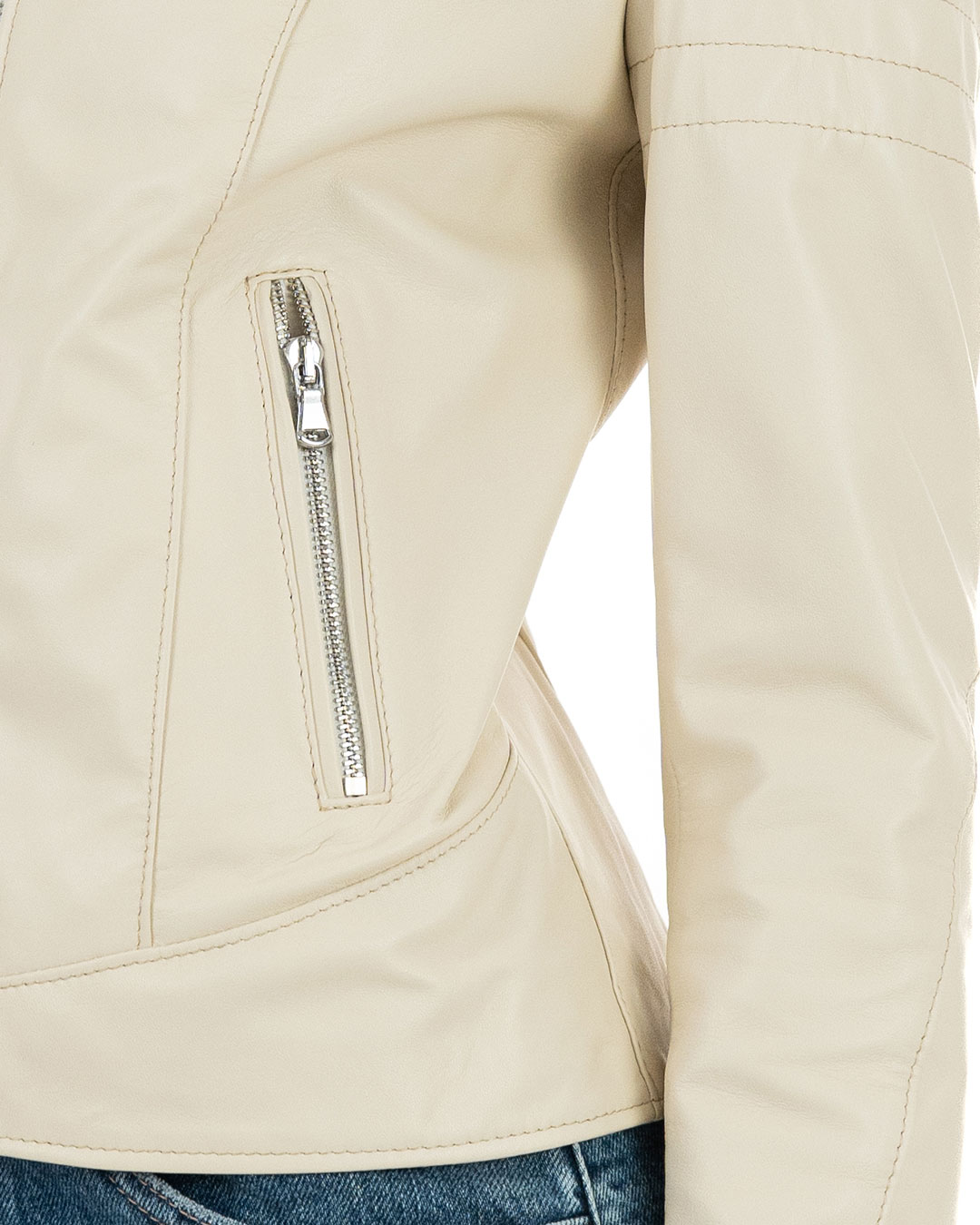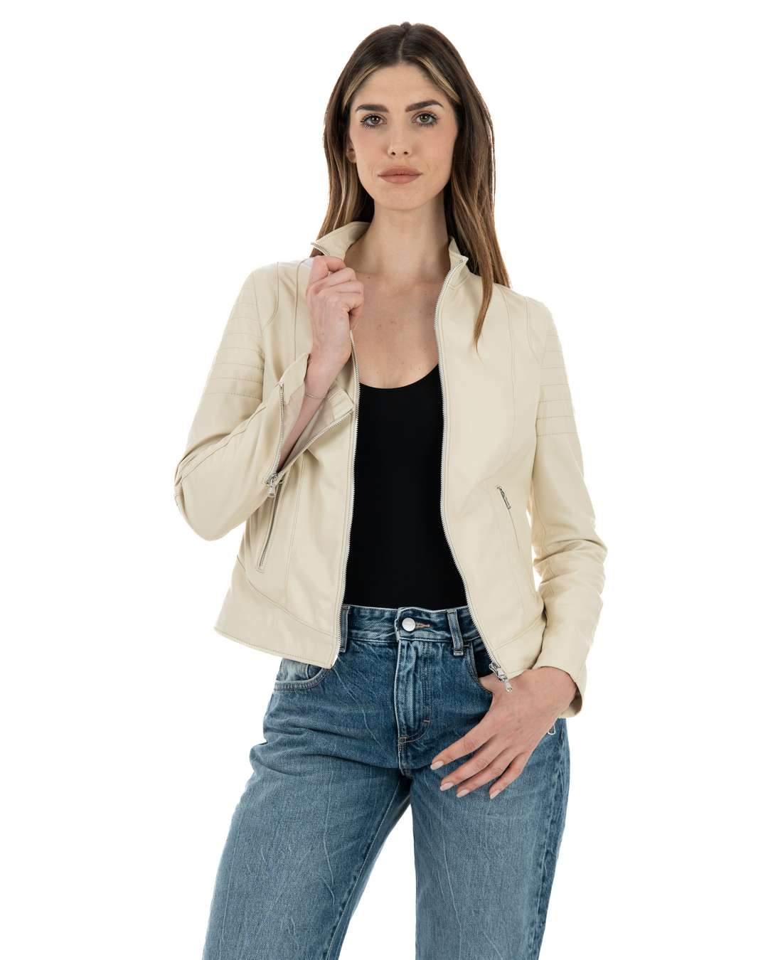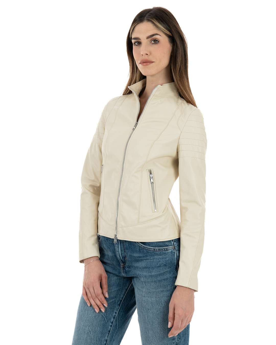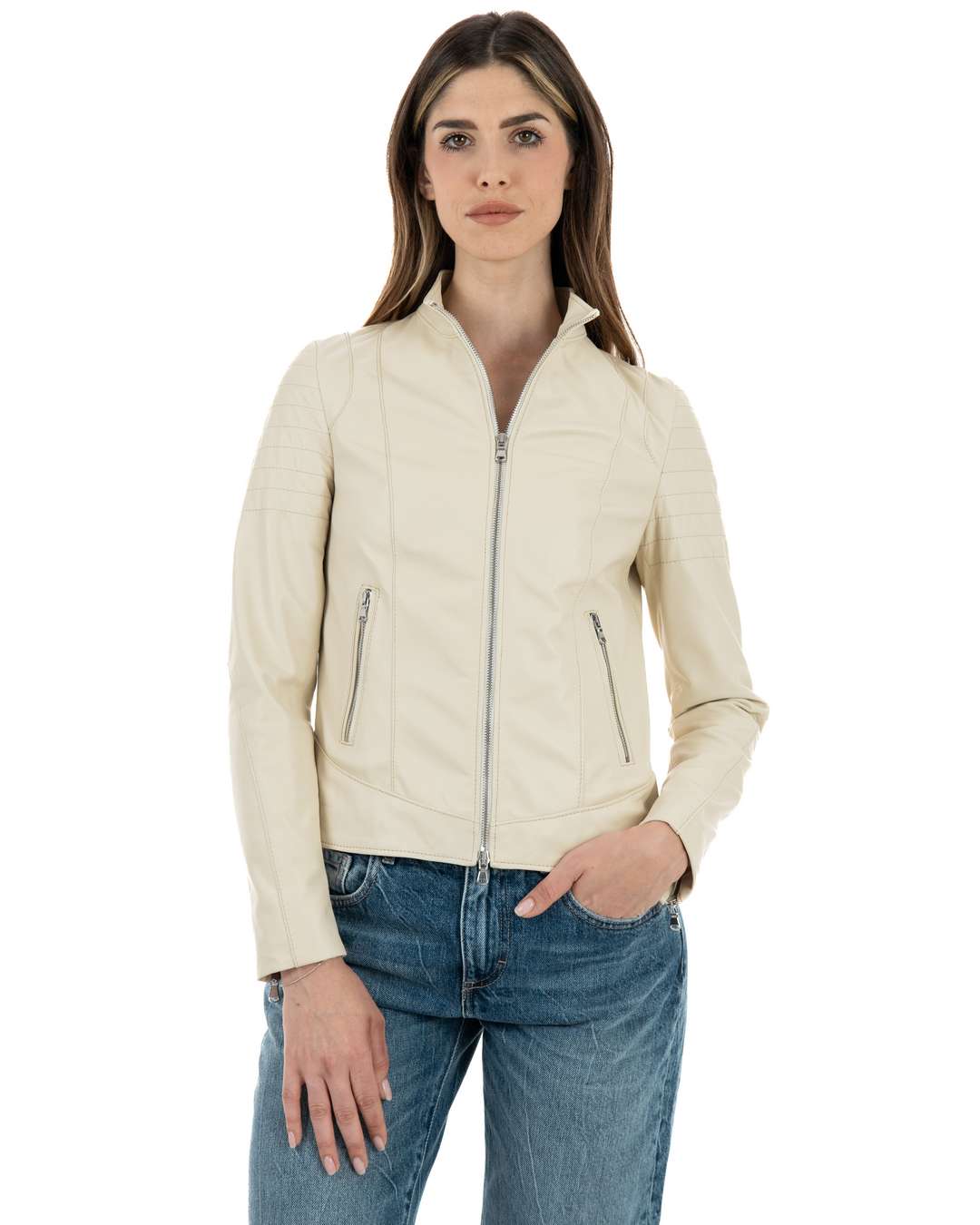Giacca Biker da Donna in Vera Pelle Panna – Modello CLOE