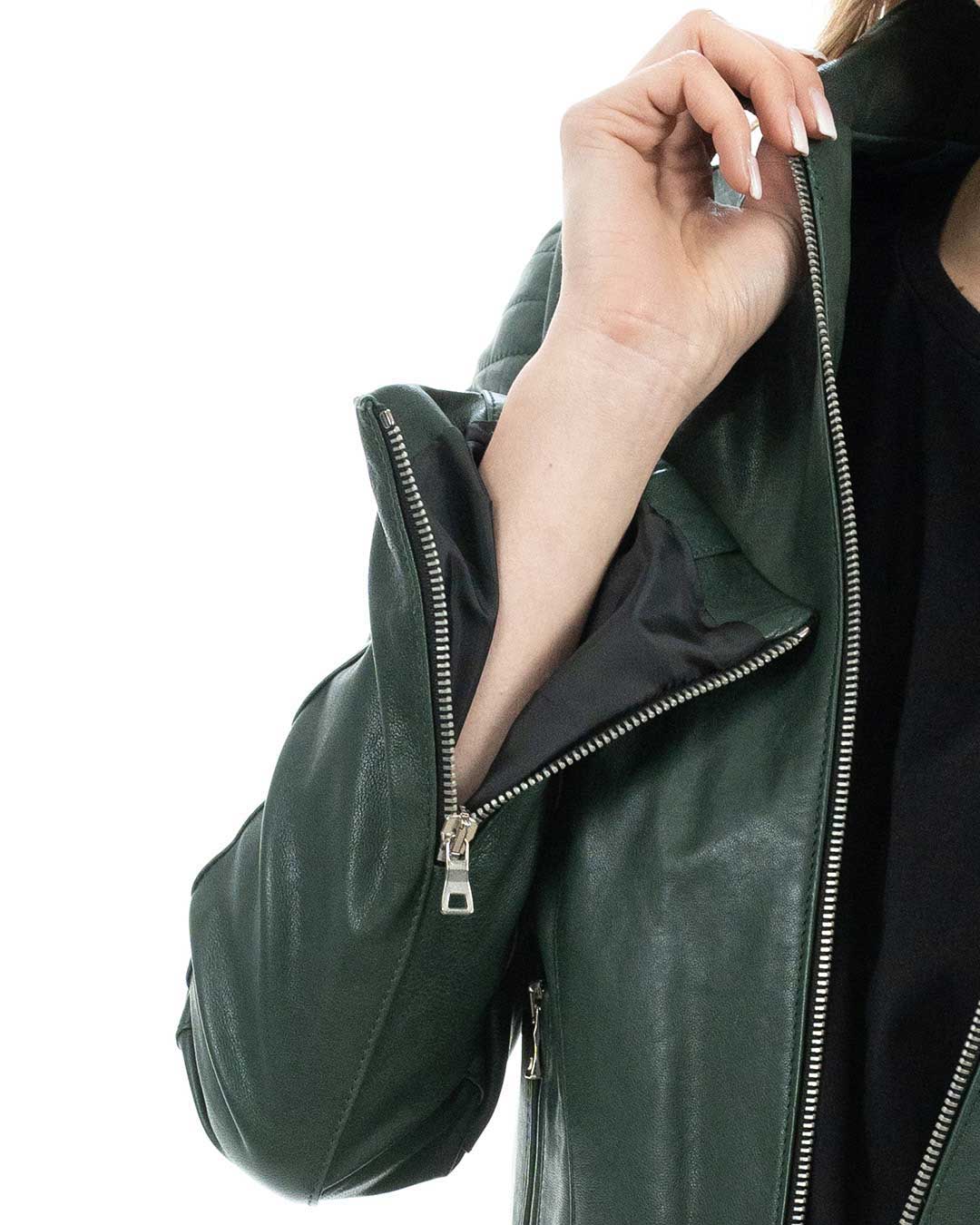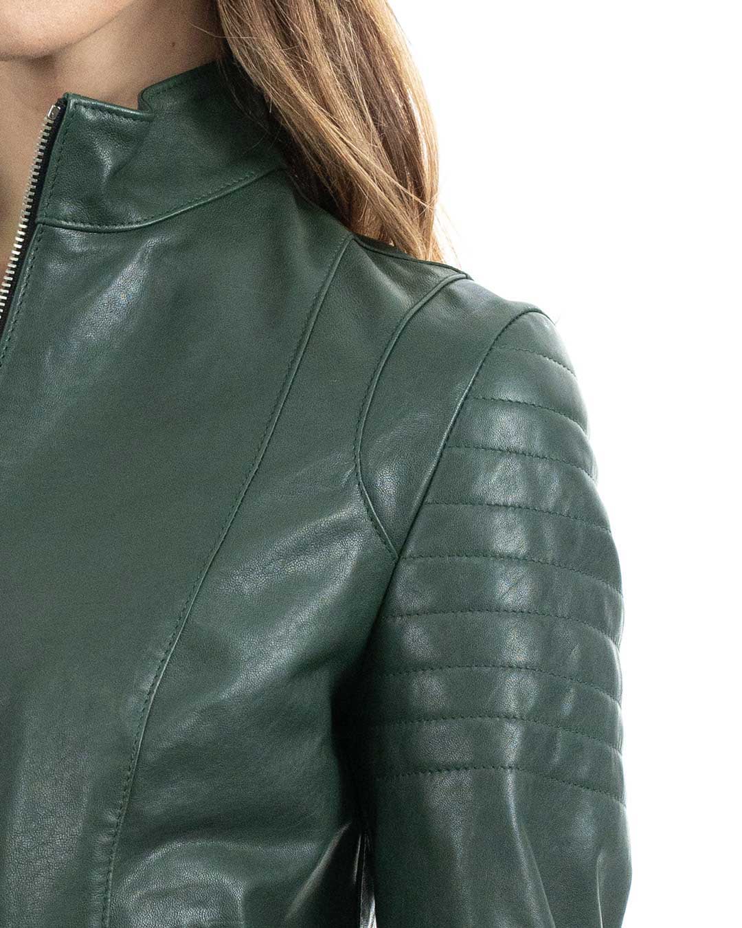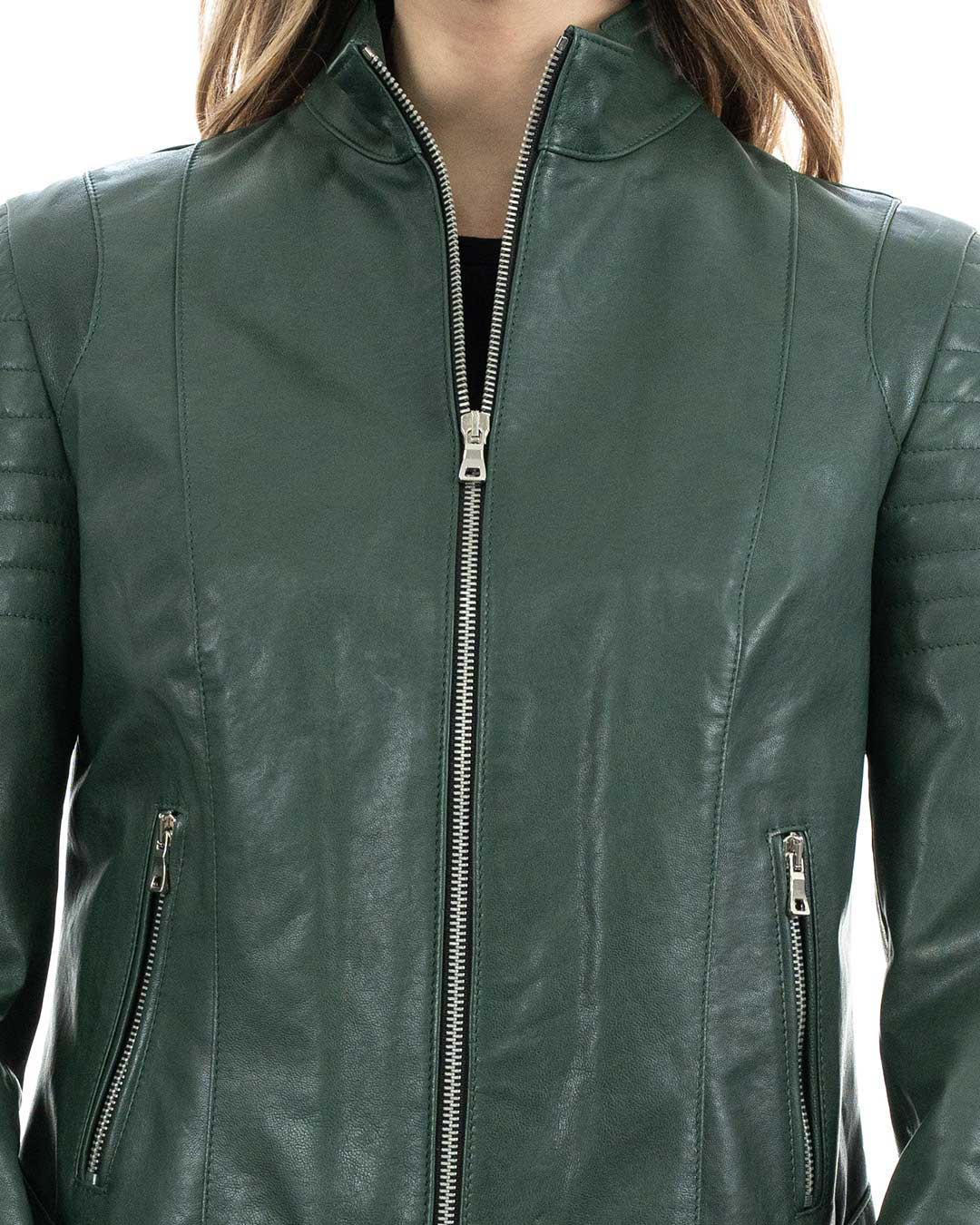 CLOE Giacca Biker da donna in vera pelle verde
