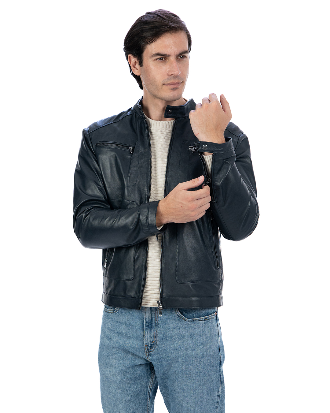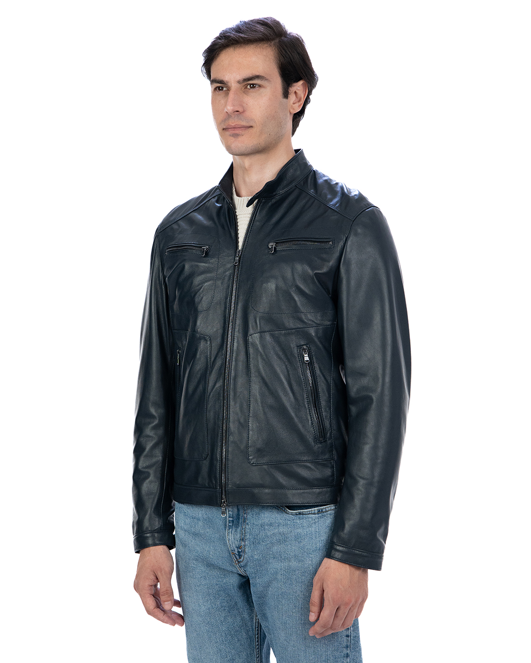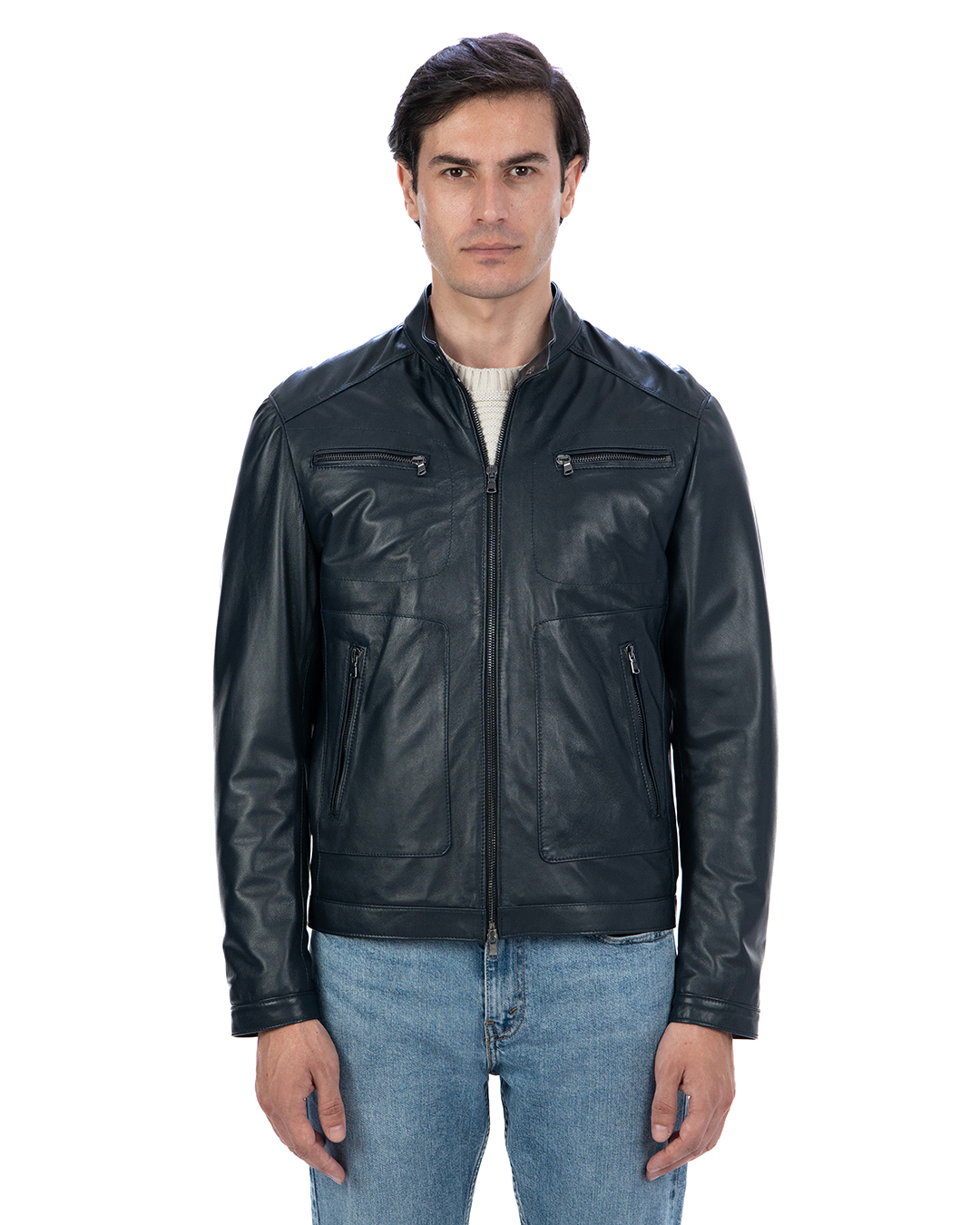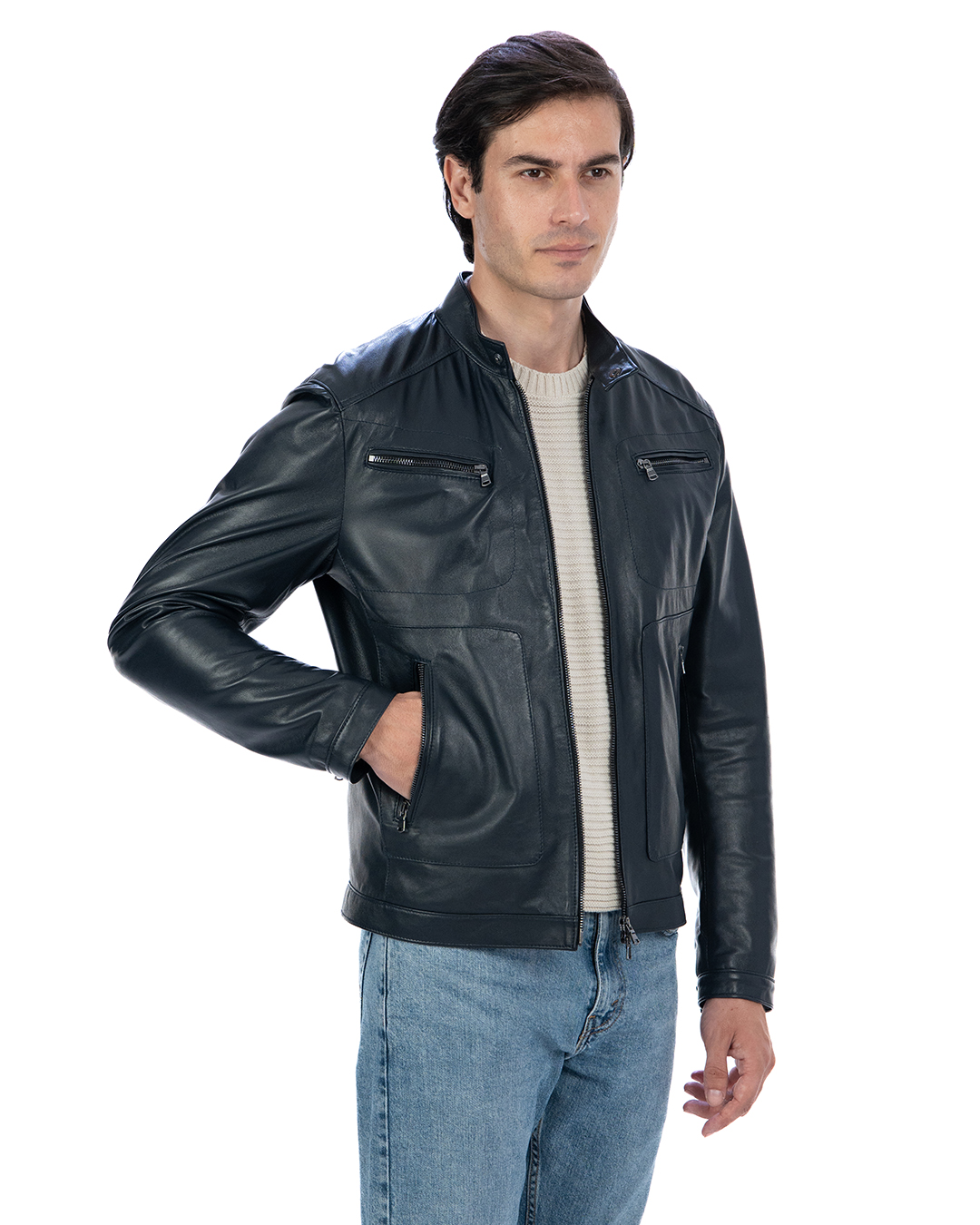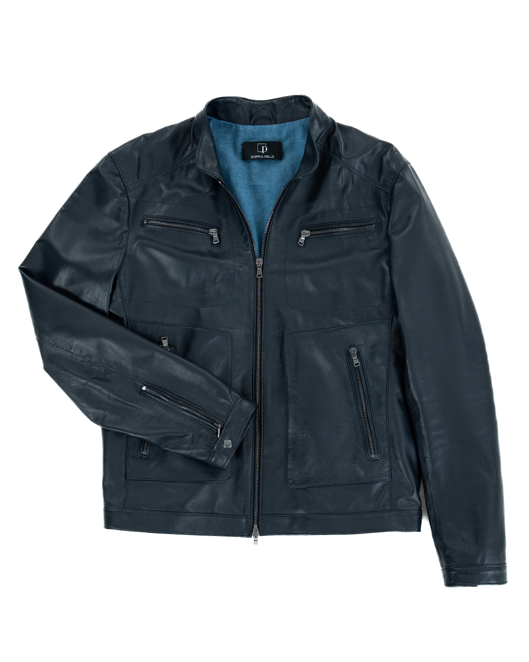 Giacca Biker da Uomo in Vera Pelle Blu – Modello CRISTIAN