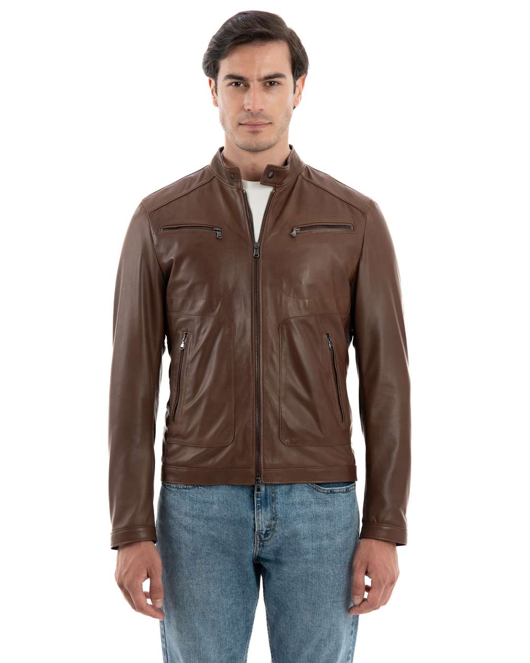 Giacca Biker da Uomo in Vera Pelle Cuoio effetto Tamponato – Modello CRISTIAN