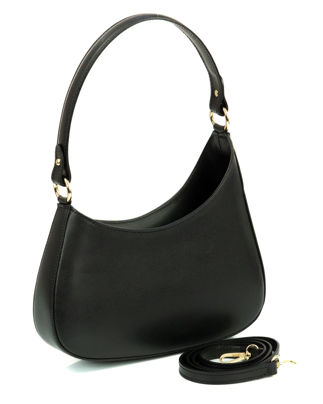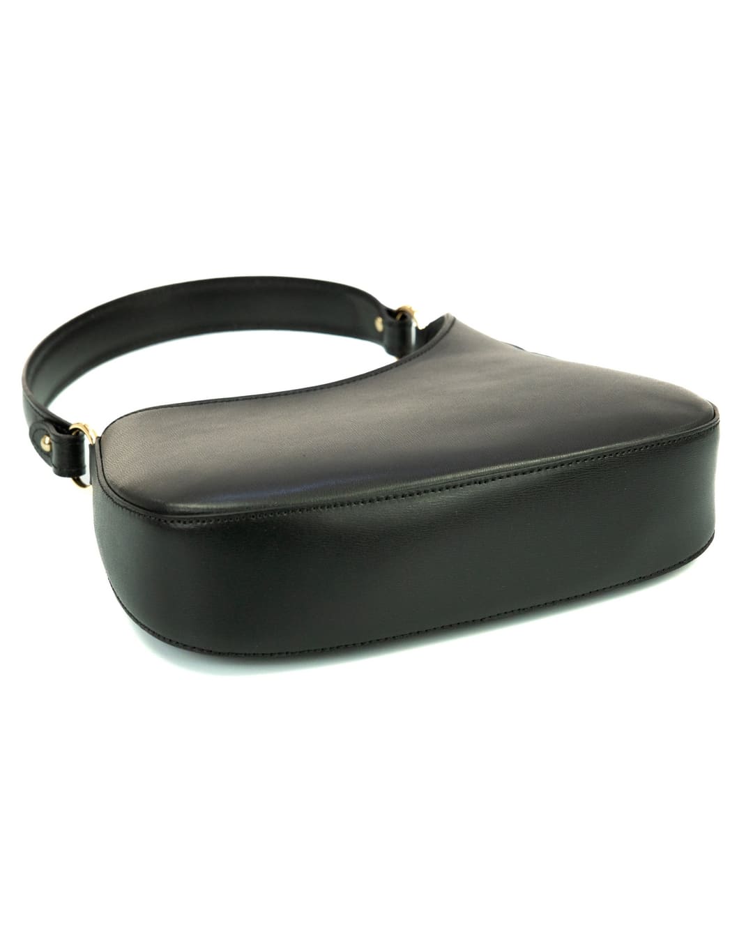 DAFNE Borsa hobo a spalla in vera pelle saffiano colore nero con tracolla