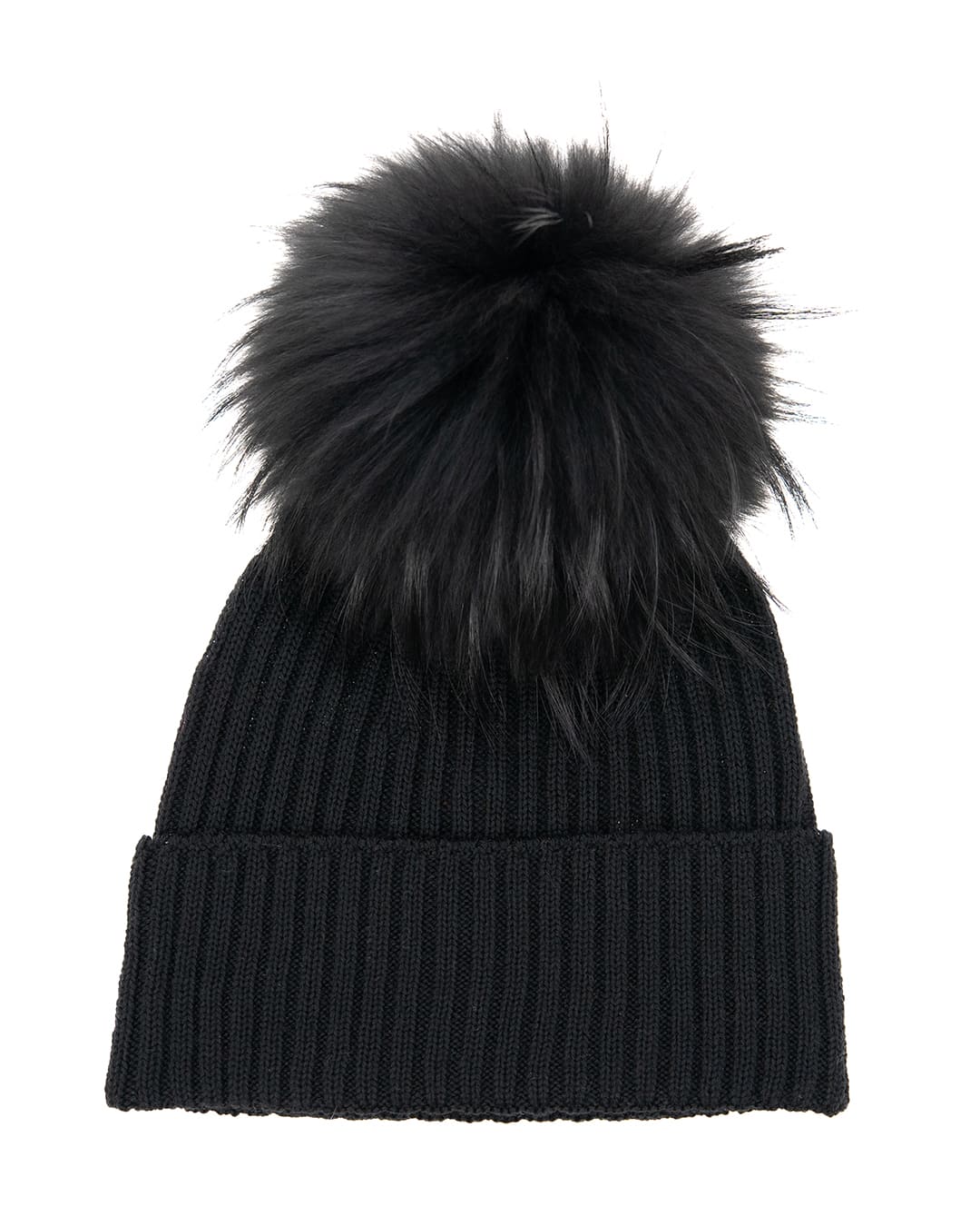 DAISY Cappello donna in lana nero con pompon in pelliccia