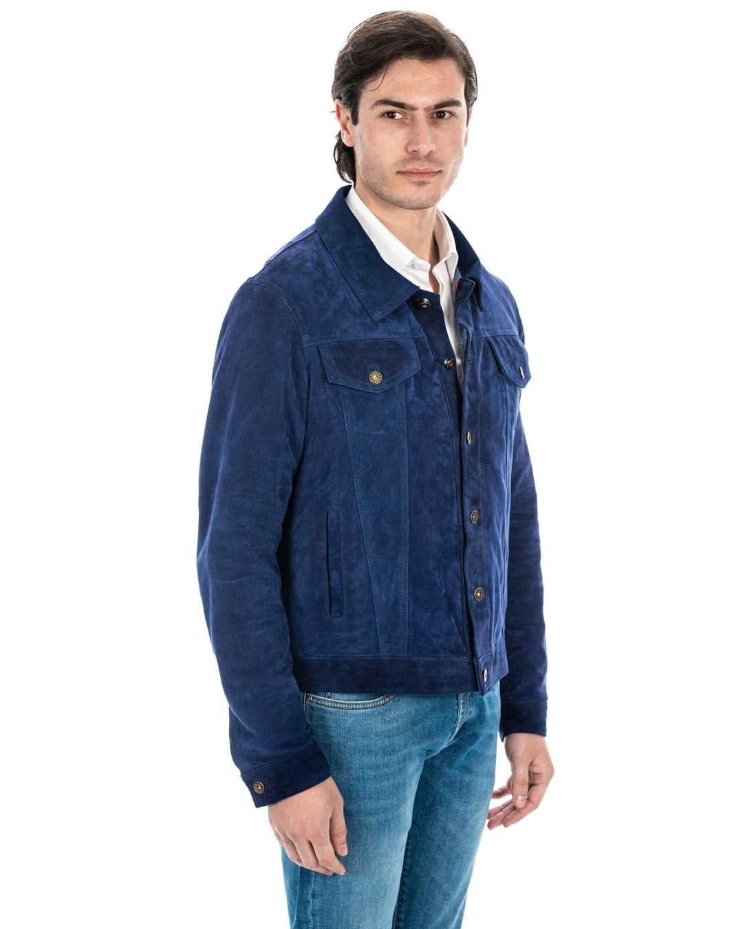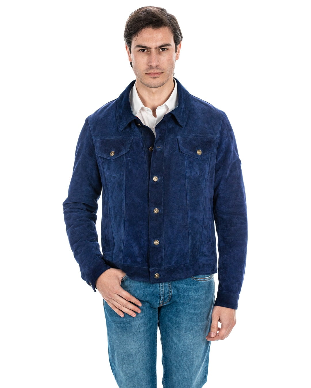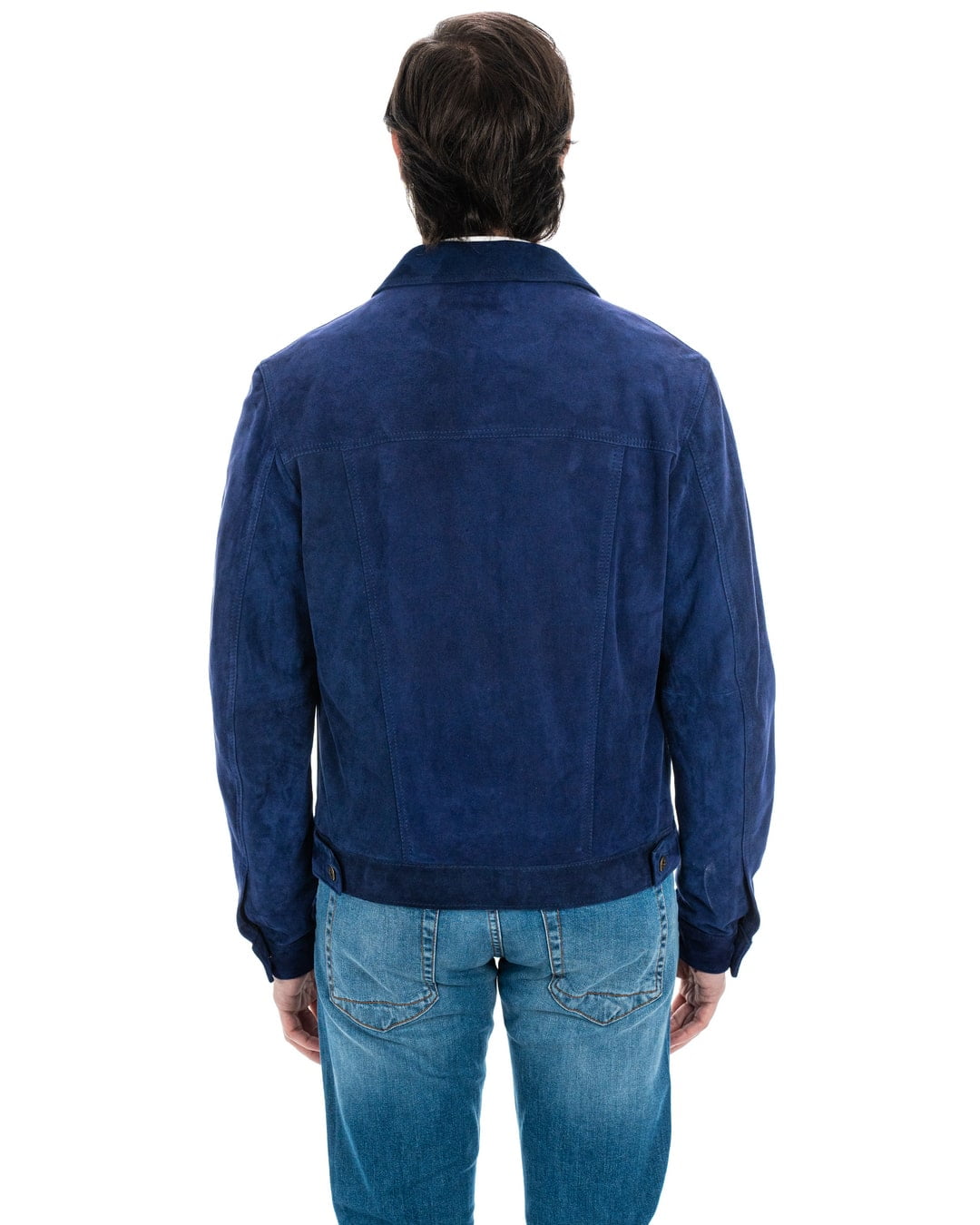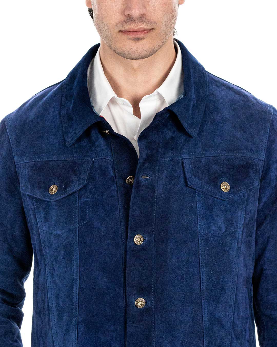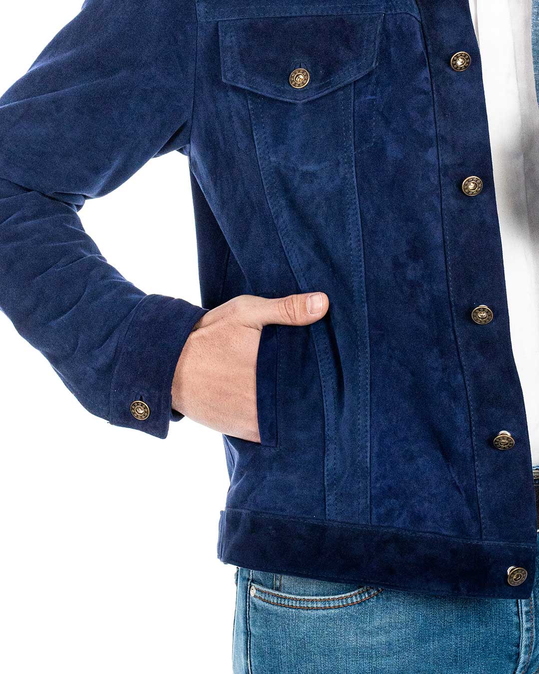 DENNY Giacca Jeans da uomo in vera pelle scamosciata blu