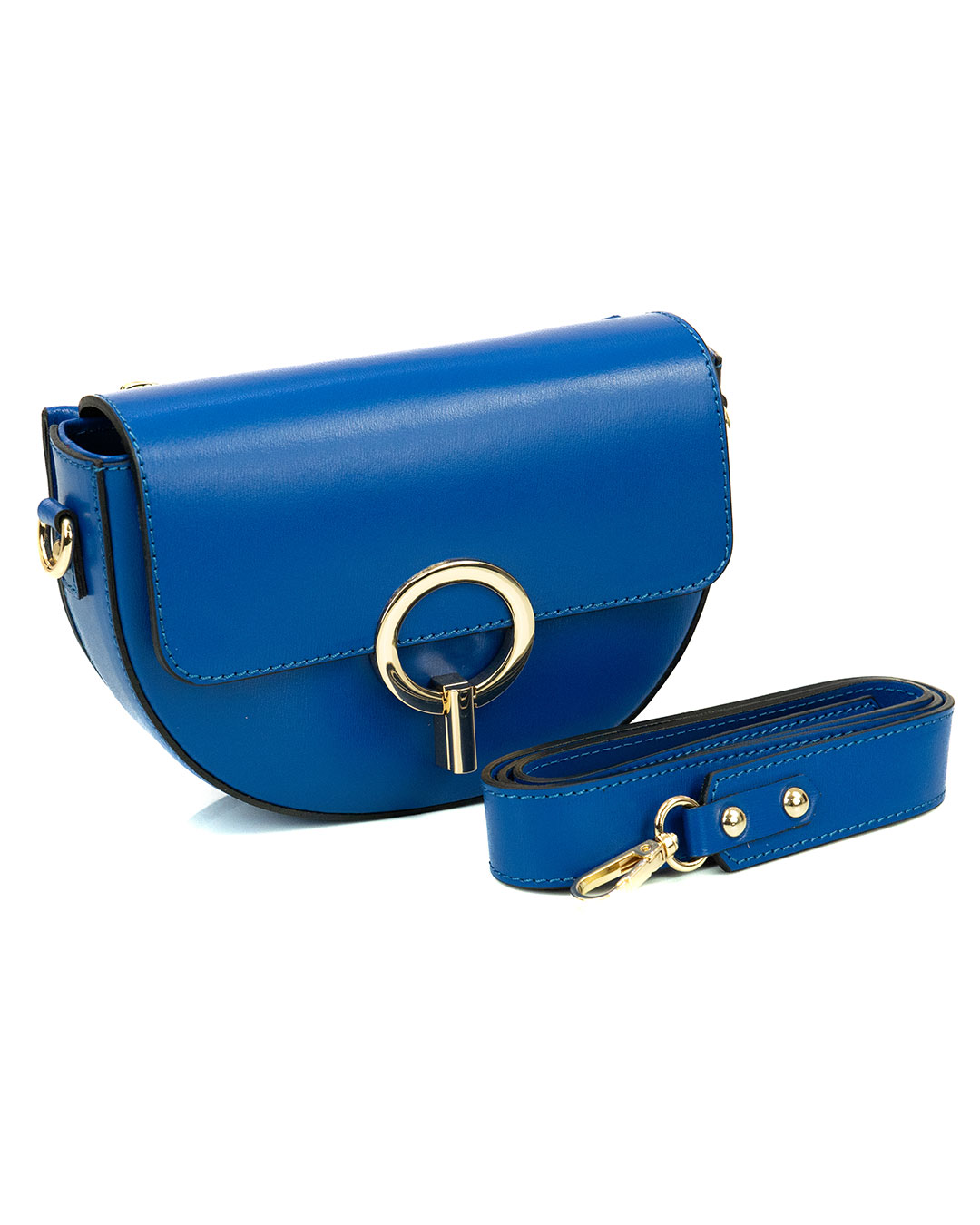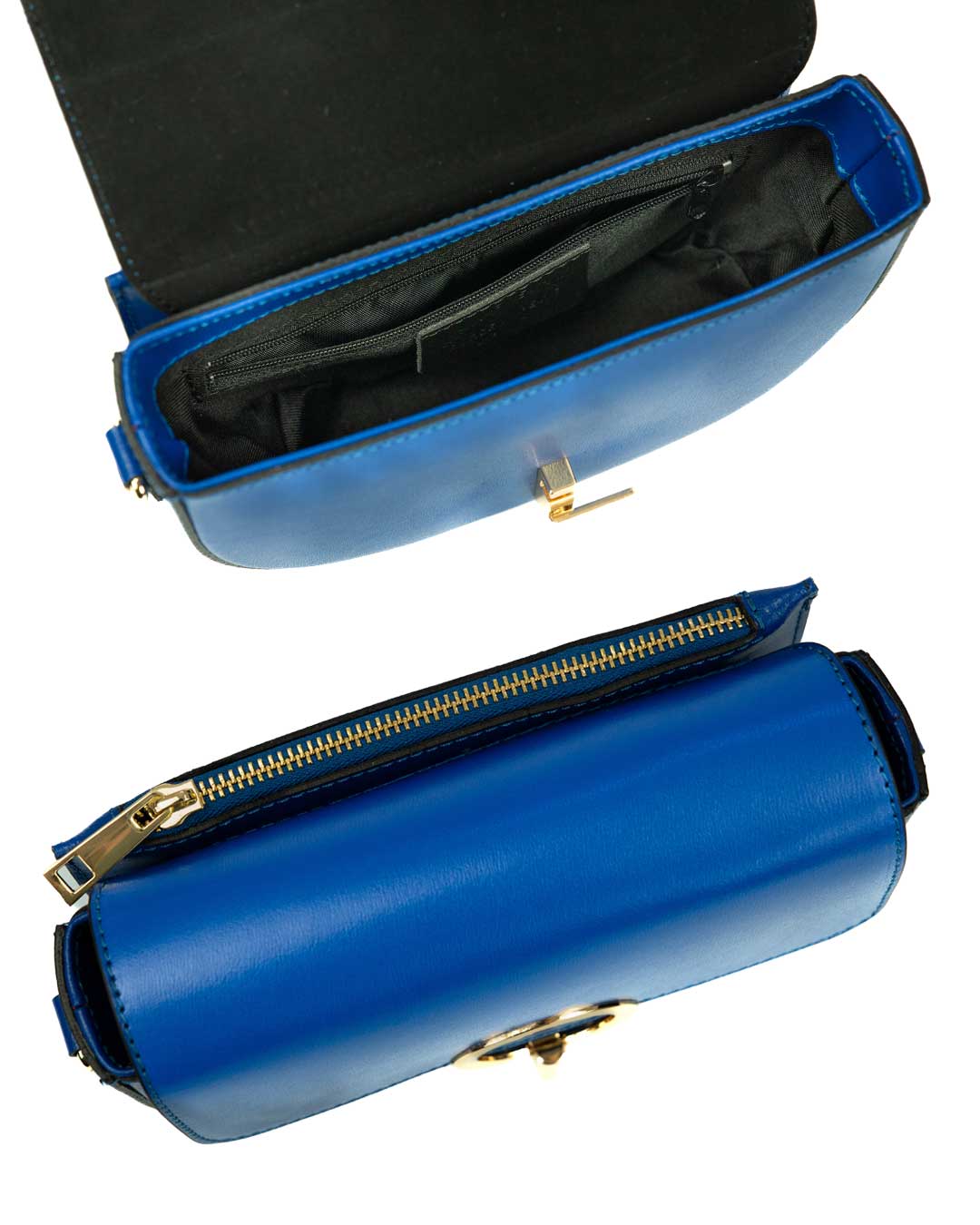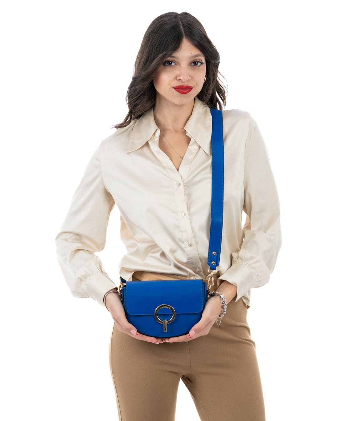 EVELYN Borsa a tracolla in vera pelle saffiano colore blu elettrico