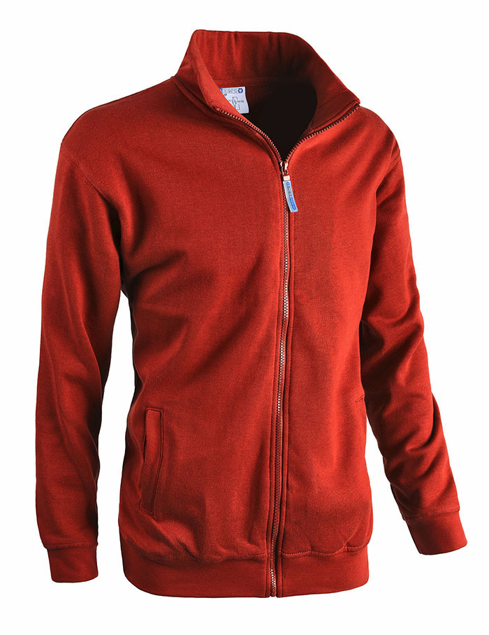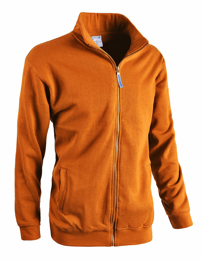 - Una felpa da lavoro con chiusura centrale a zip lunga e tasche laterali.