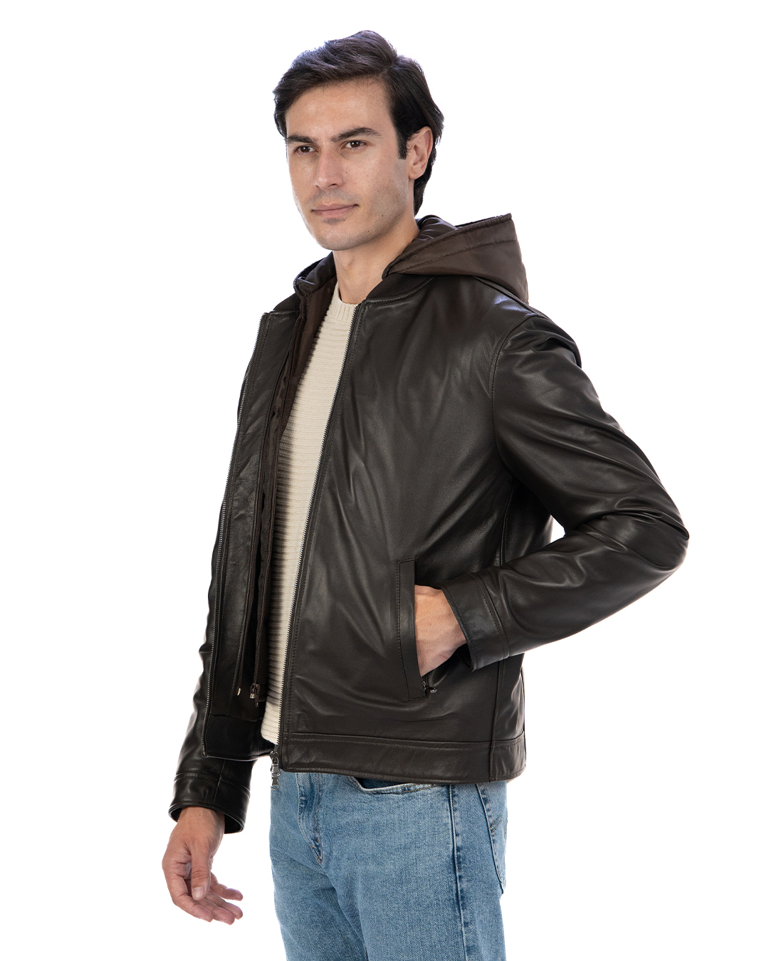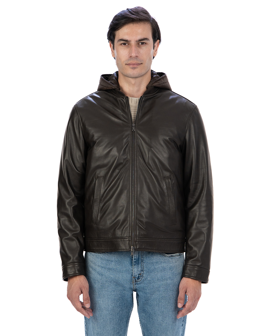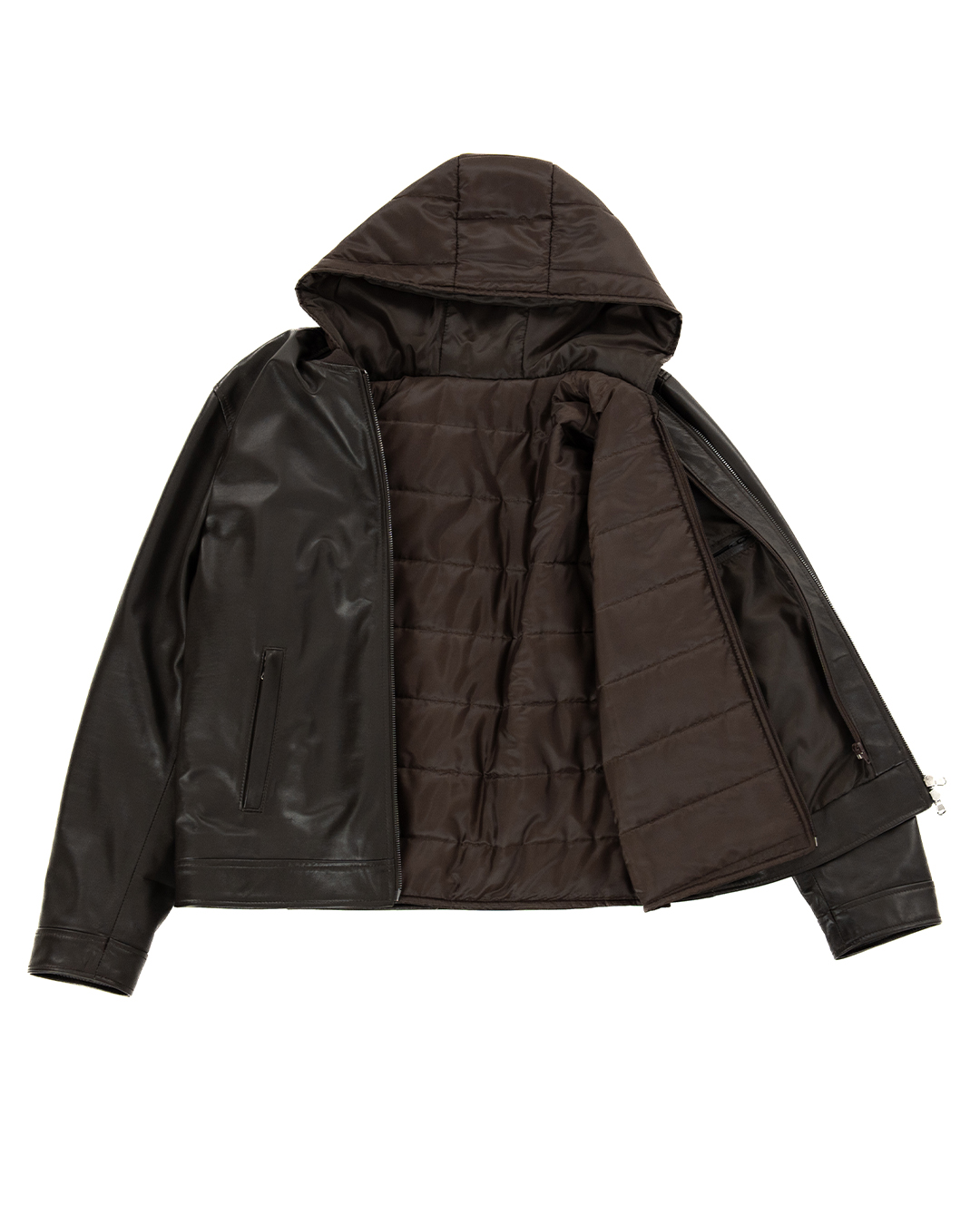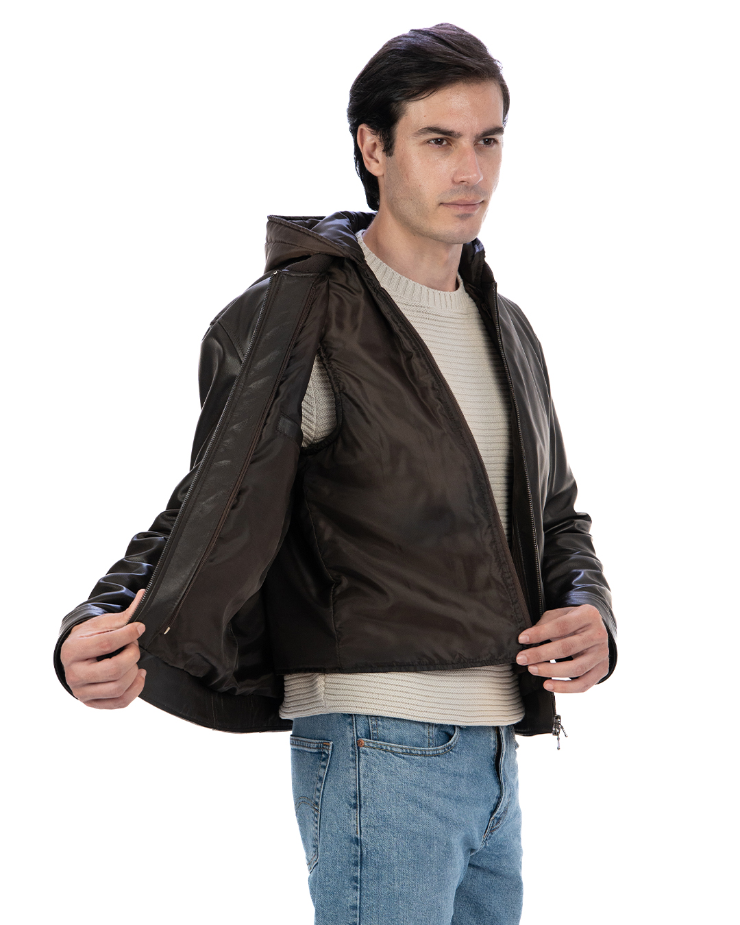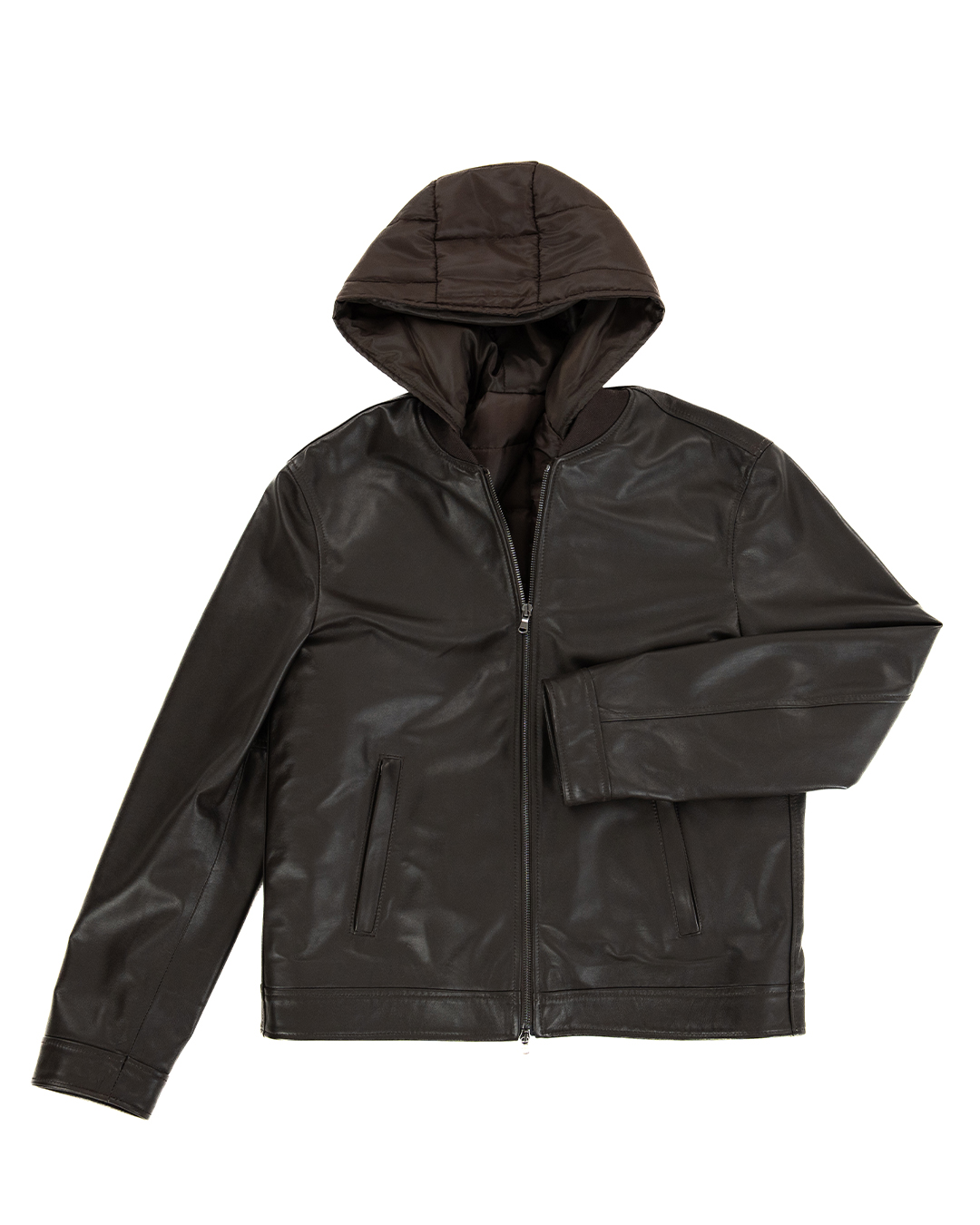 La caratteristica che rende la giacca in pelle GABRIEL davvero speciale è il suo trapuntino interno da 150 grammi, leggero ma caldo, dotato di cappuccio integrato.