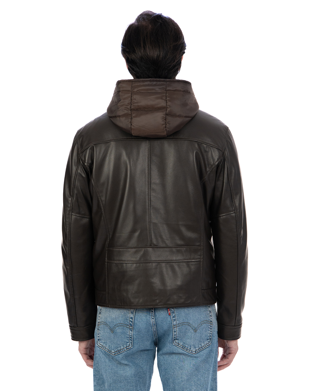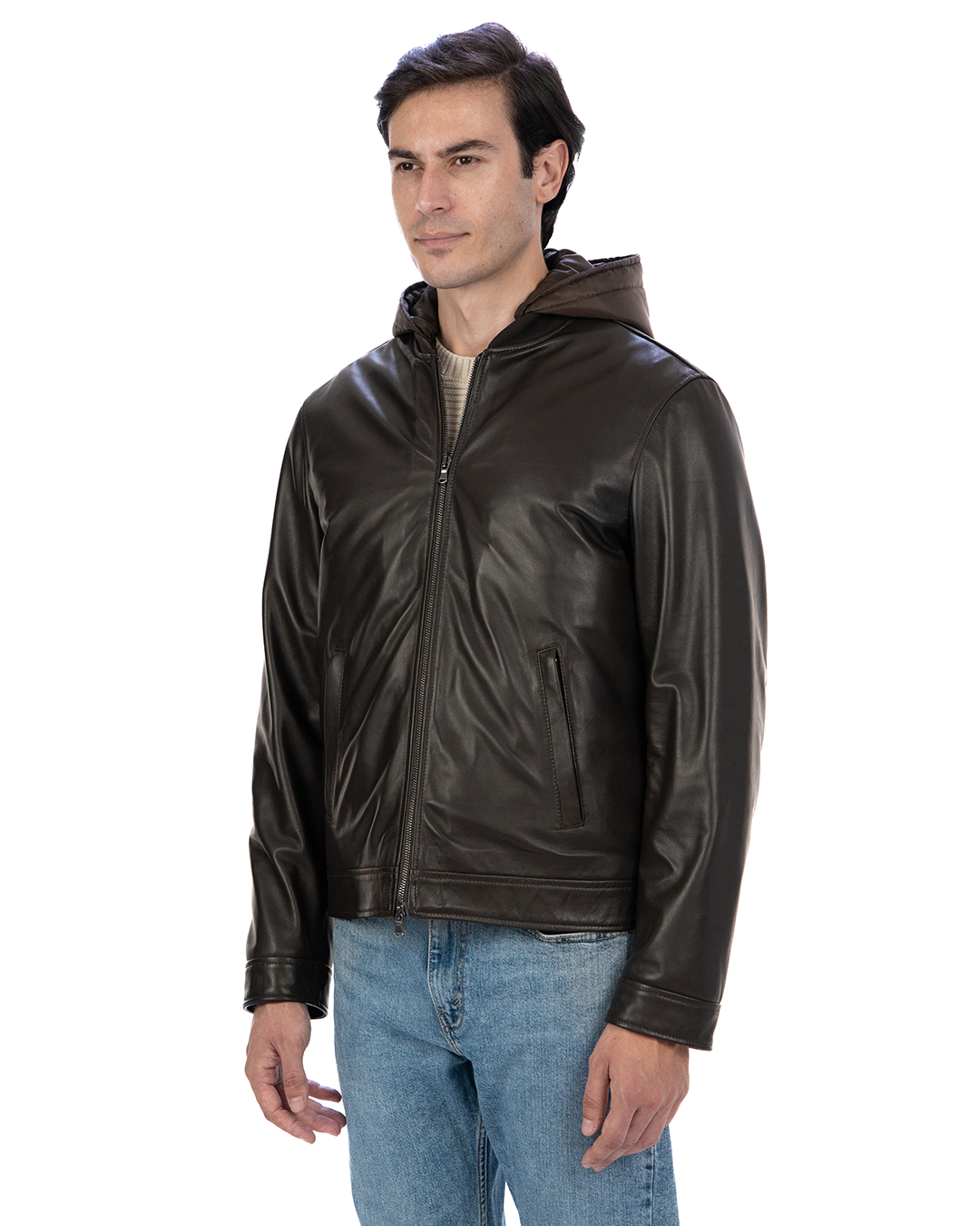 Giacca in Pelle 4 Stagioni: Trapuntino Removibile con Cappuccio