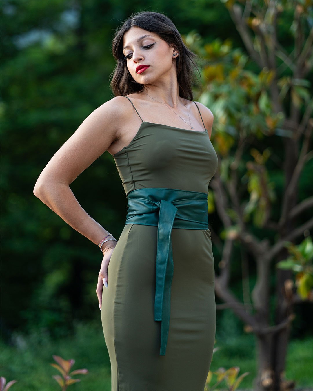 Cintura Obi Fusciacca da Donna in Vera Pelle Verde – Eleganza Artigianale Made in Italy