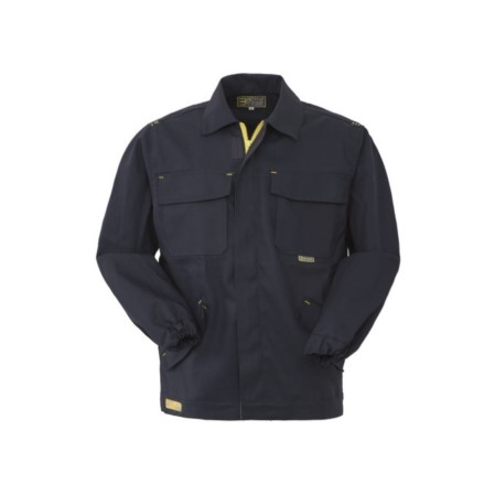 - Un giubbetto da lavoro con chiusura anteriore tramite cerniera centrale coperta.