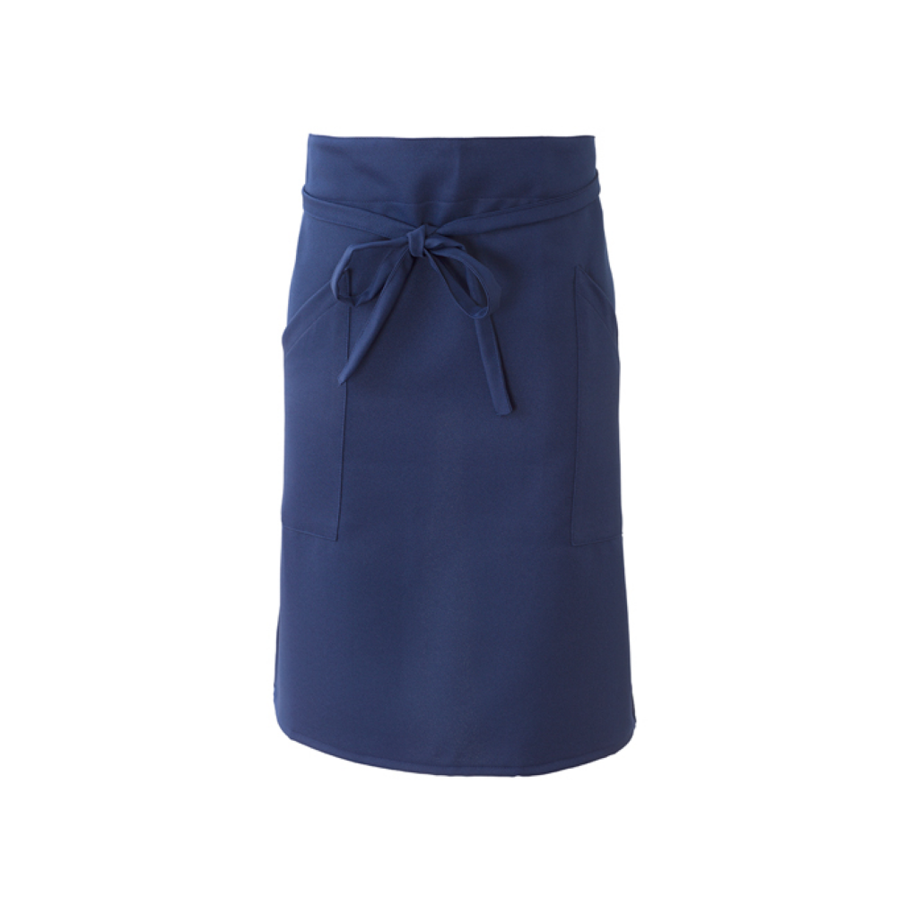 - Un grembiule corto da sala tipo francese con due tasche laterali e lacci abbastanza lunghi da essere annodati anche sul davanti.