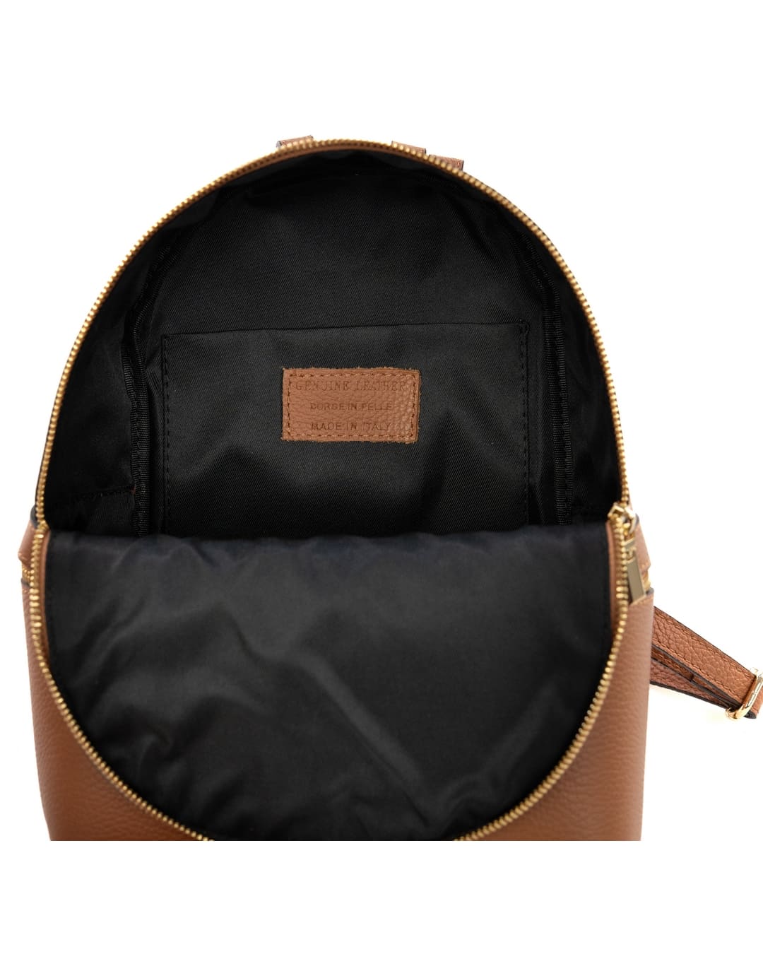 L’interno, foderato in tessuto resistente, è arricchito da una tasca con zip utile per custodire piccoli oggetti personali. Gli spallacci regolabili garantiscono comfort in ogni momento, mentre il manico superiore in pelle offre un’alternativa pratica per portarlo a mano.