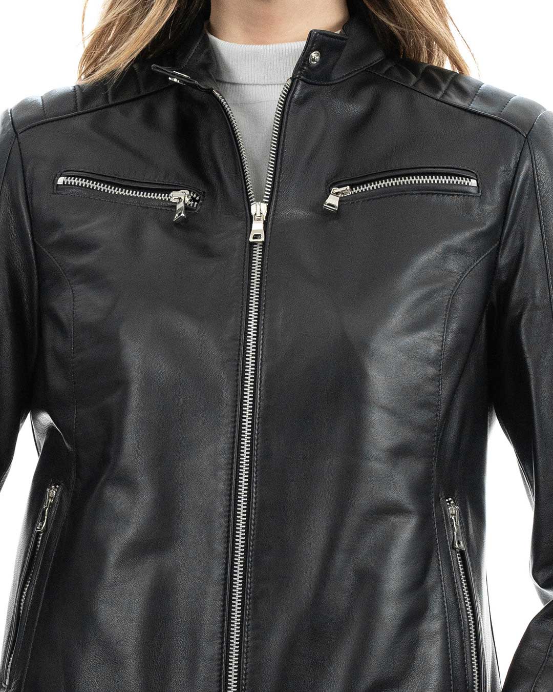 Giacca Biker da Donna in Vera Pelle Nero – Modello ILARY