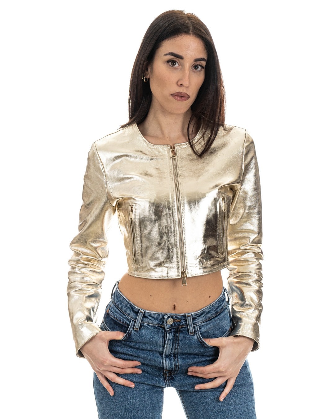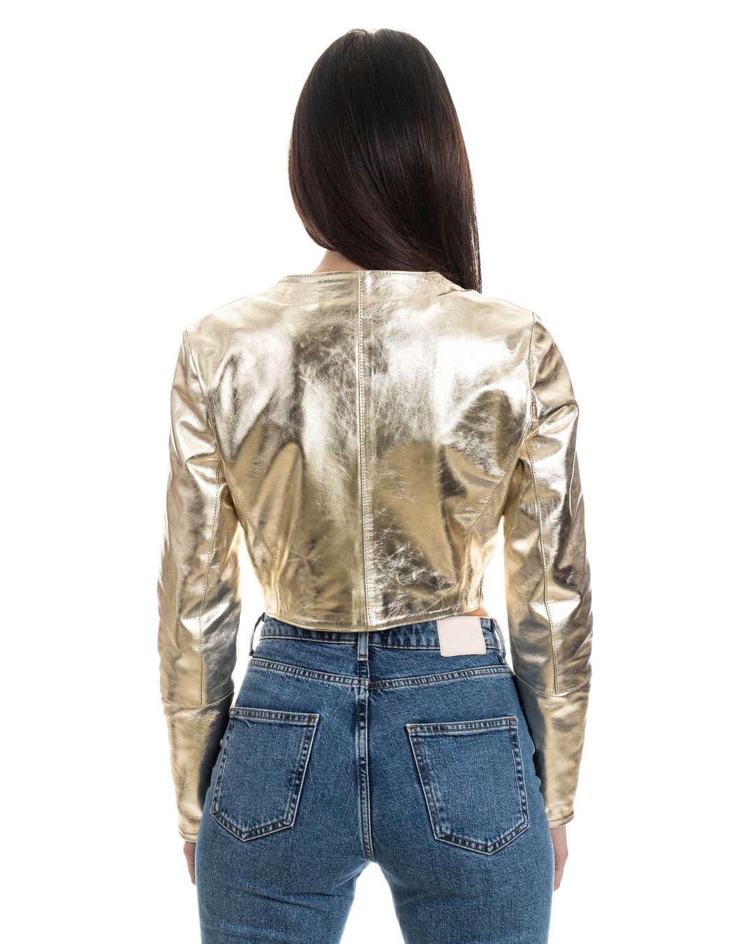 Giacca Corta da Donna in Vera Pelle Laminata Oro – Modello ISABEL