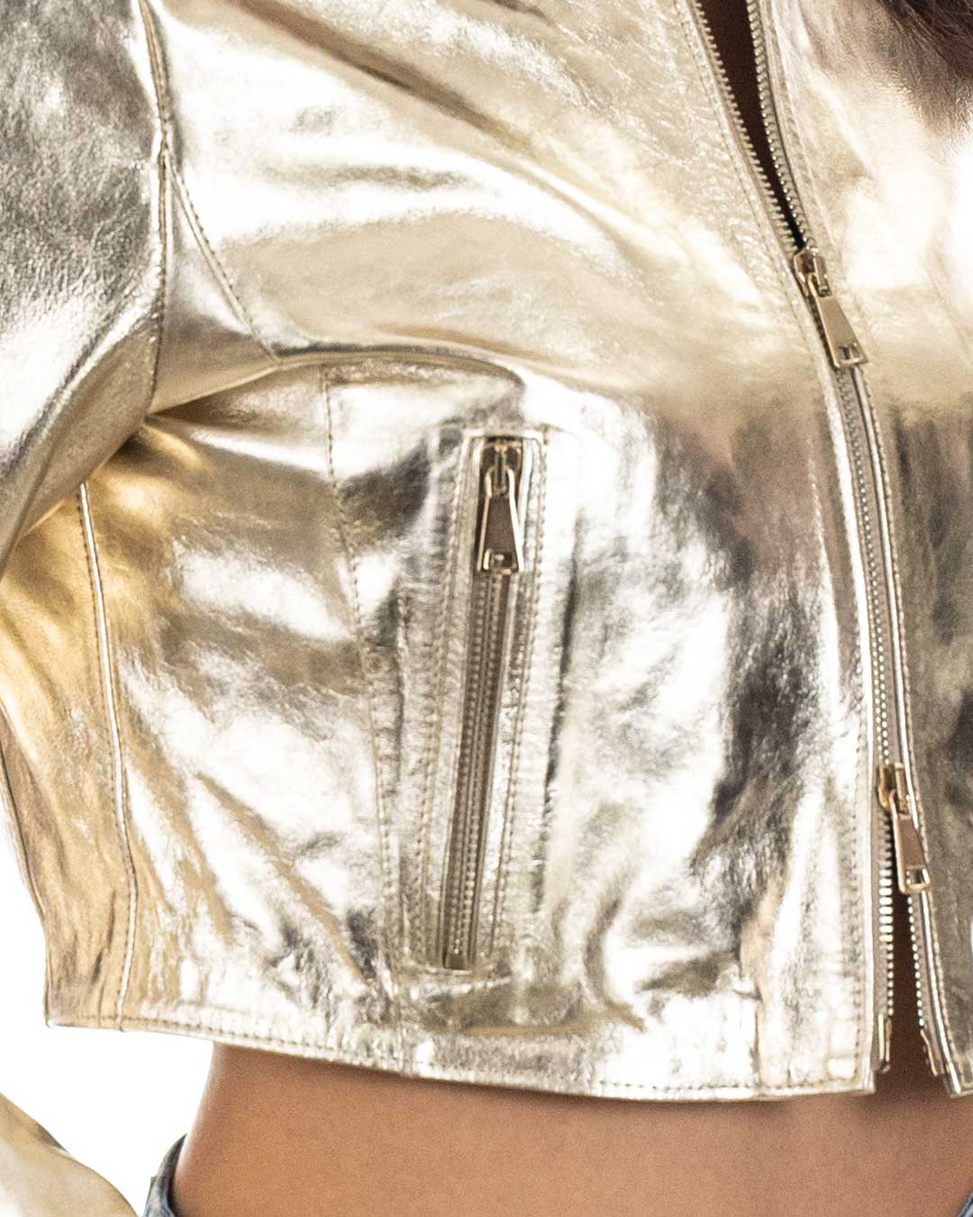 ISABEL Giacca corta da donna in vera pelle laminata oro