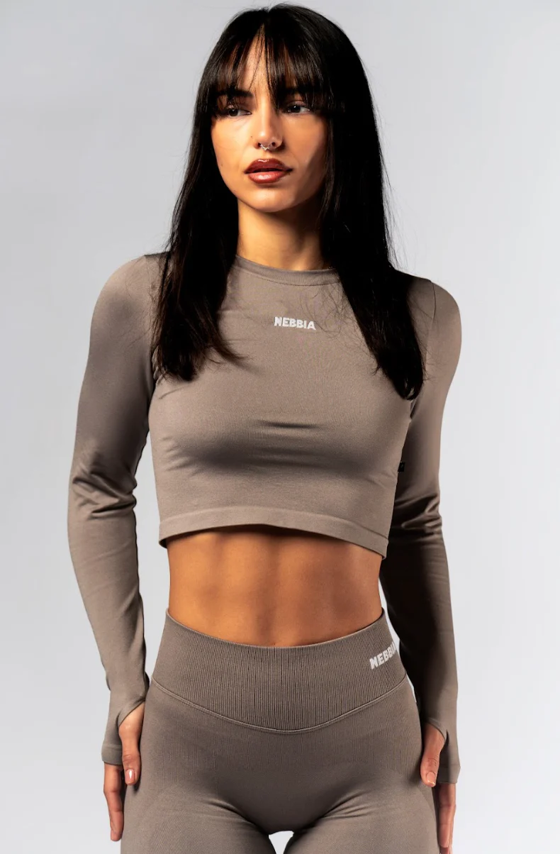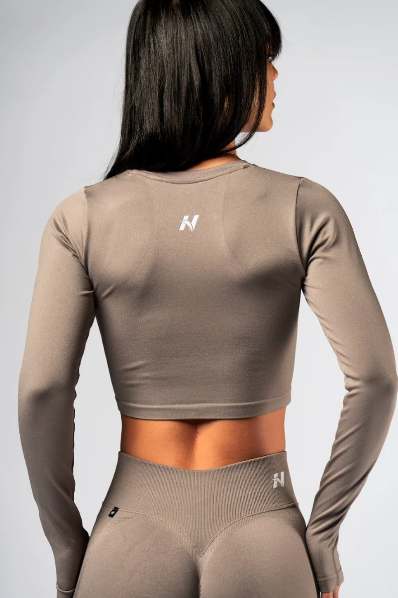 Maglia a maniche lunghe senza cuciture Nebbia Power 892 – Marrone chiaro cenere