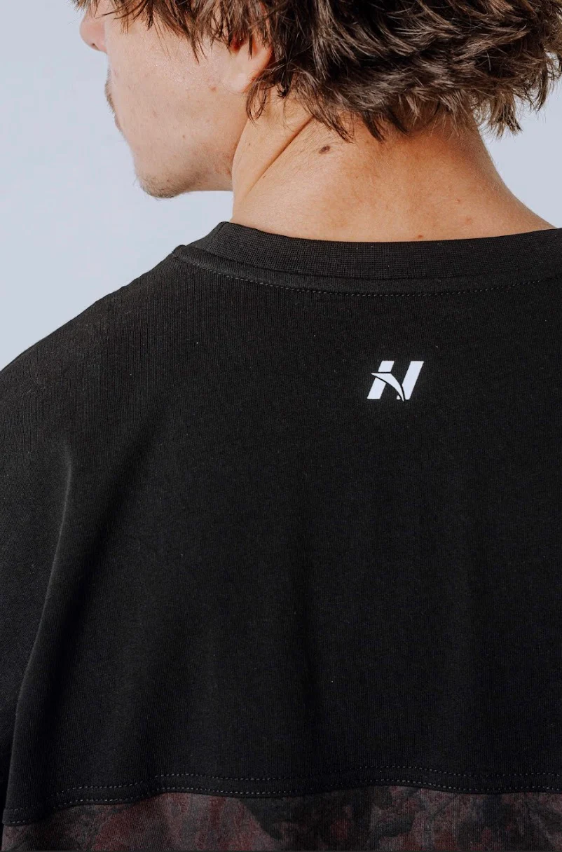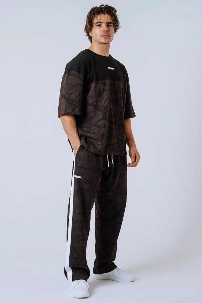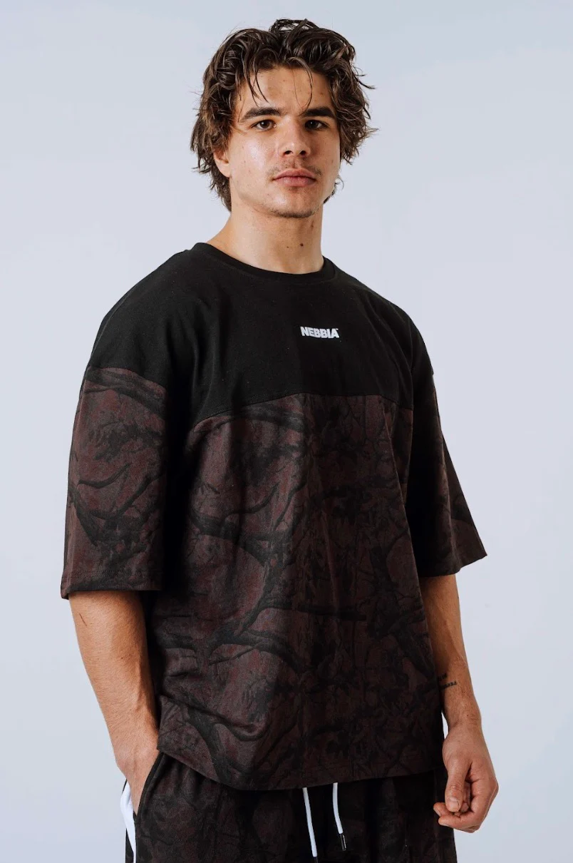 Maglietta mimetica oversize Nebbia Power 898 – Nero/Marrone scuro | Copertura per pompa da palestra