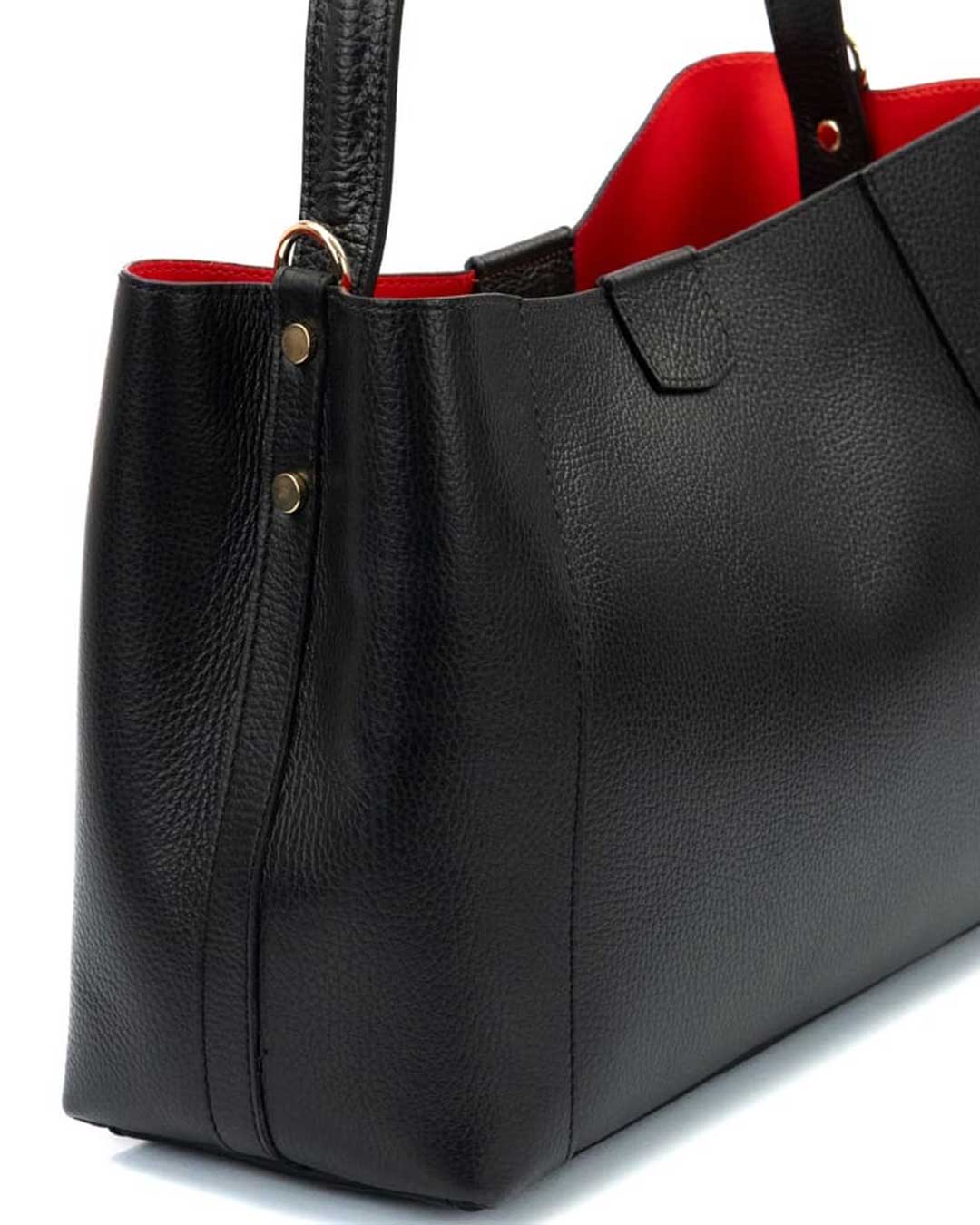 L’interno della borsa Margot è studiato per offrirti la massima organizzazione: è suddiviso in due scomparti con chiusura a bottone a calamita, separati da un ampio scomparto centrale in tessuto con chiusura zip, perfetto per mantenere al sicuro i tuoi oggetti.