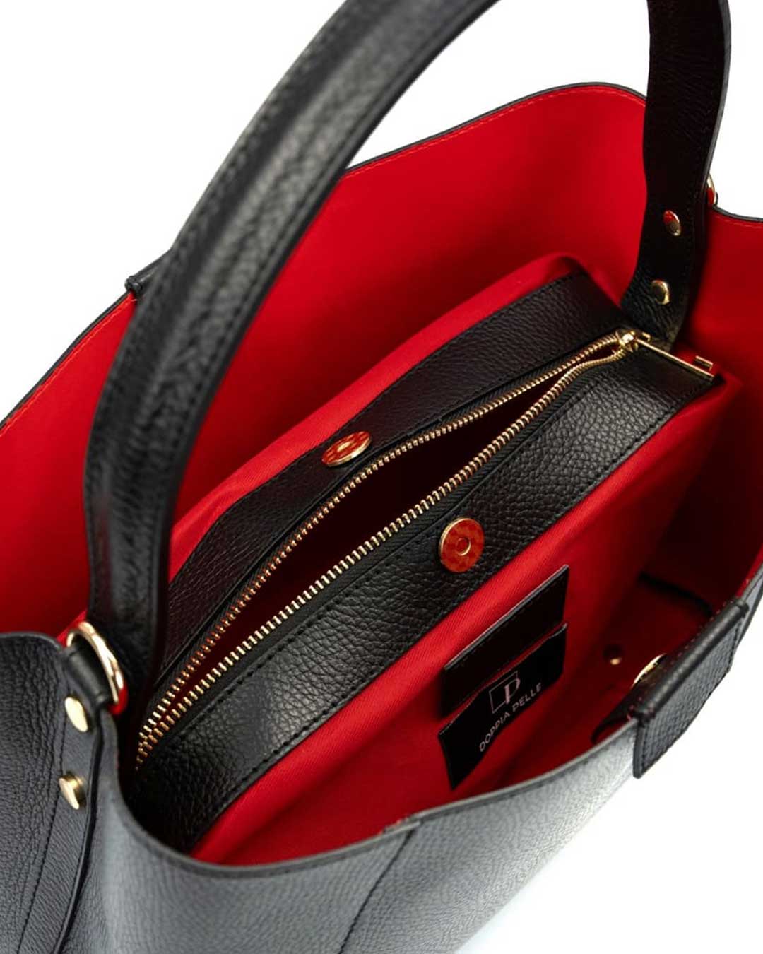 Scopri la nuova ed elegante borsa a spalla Margot firmata Doppia Pelle, realizzata in pregiata Vera Pelle di vitello martellata, interamente Made in Italy.