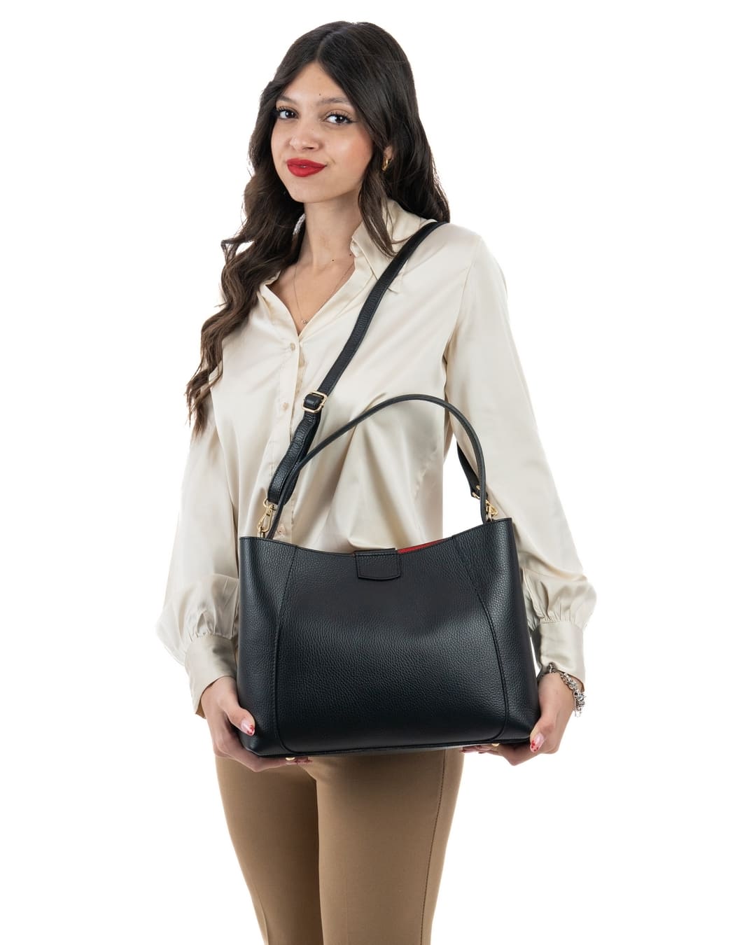 MARGOT Borsa a spalla in vera pelle martellata colore nero con tracolla