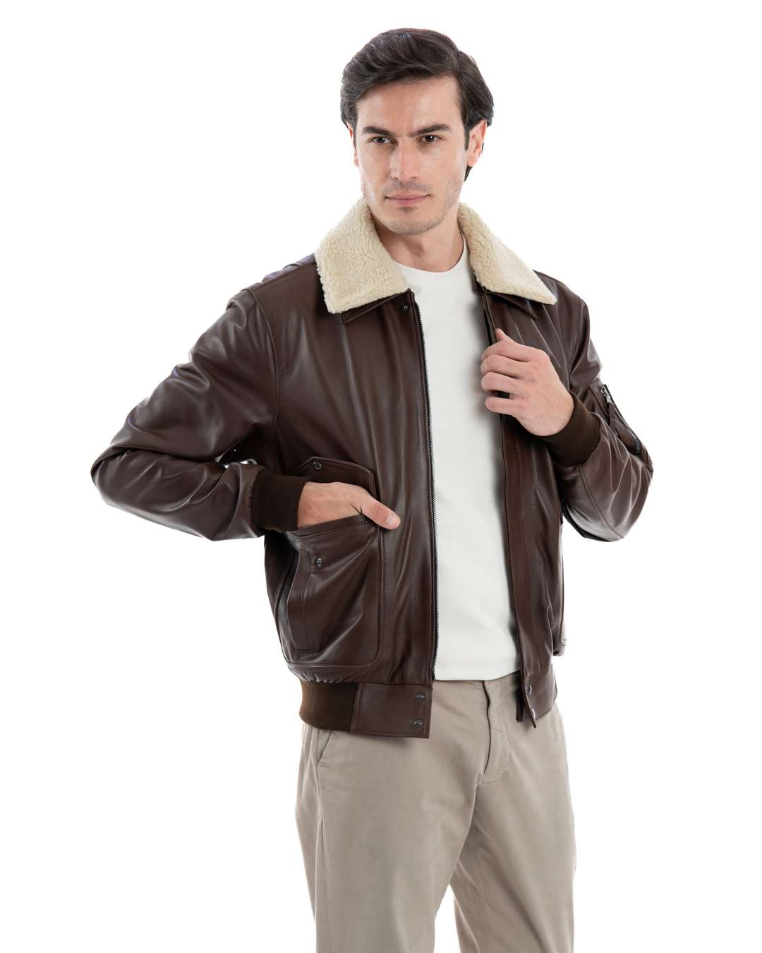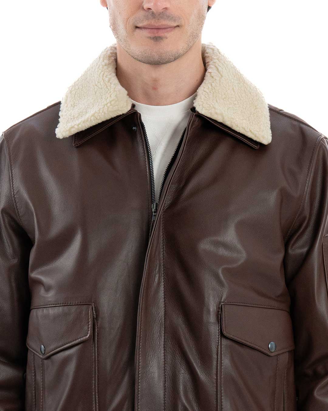 ADRIAN Bomber da uomo in Vera Pelle di Montone Shearling Scamosciato T. Moro