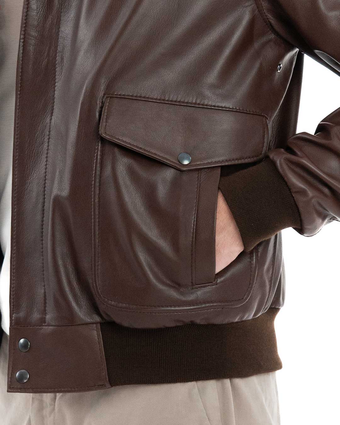 Giubbotto Aviatore Top Gun da Uomo in Vera Pelle Marrone effetto Tamponato – Modello MAVERICK SH
